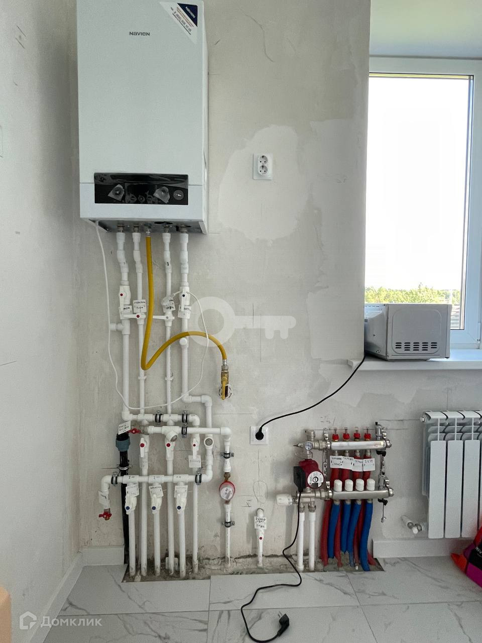 Система отопления включает в себя теплые полы и радиаторы,