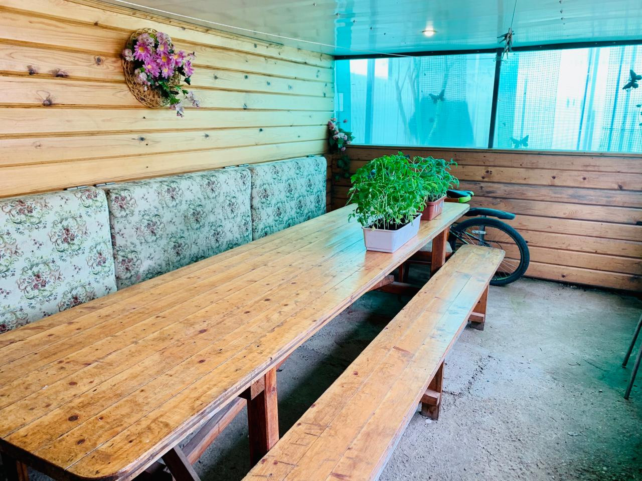 Беседка закрытая, летняя (монгальная зона, печь дровами, большой стол, лавочки.