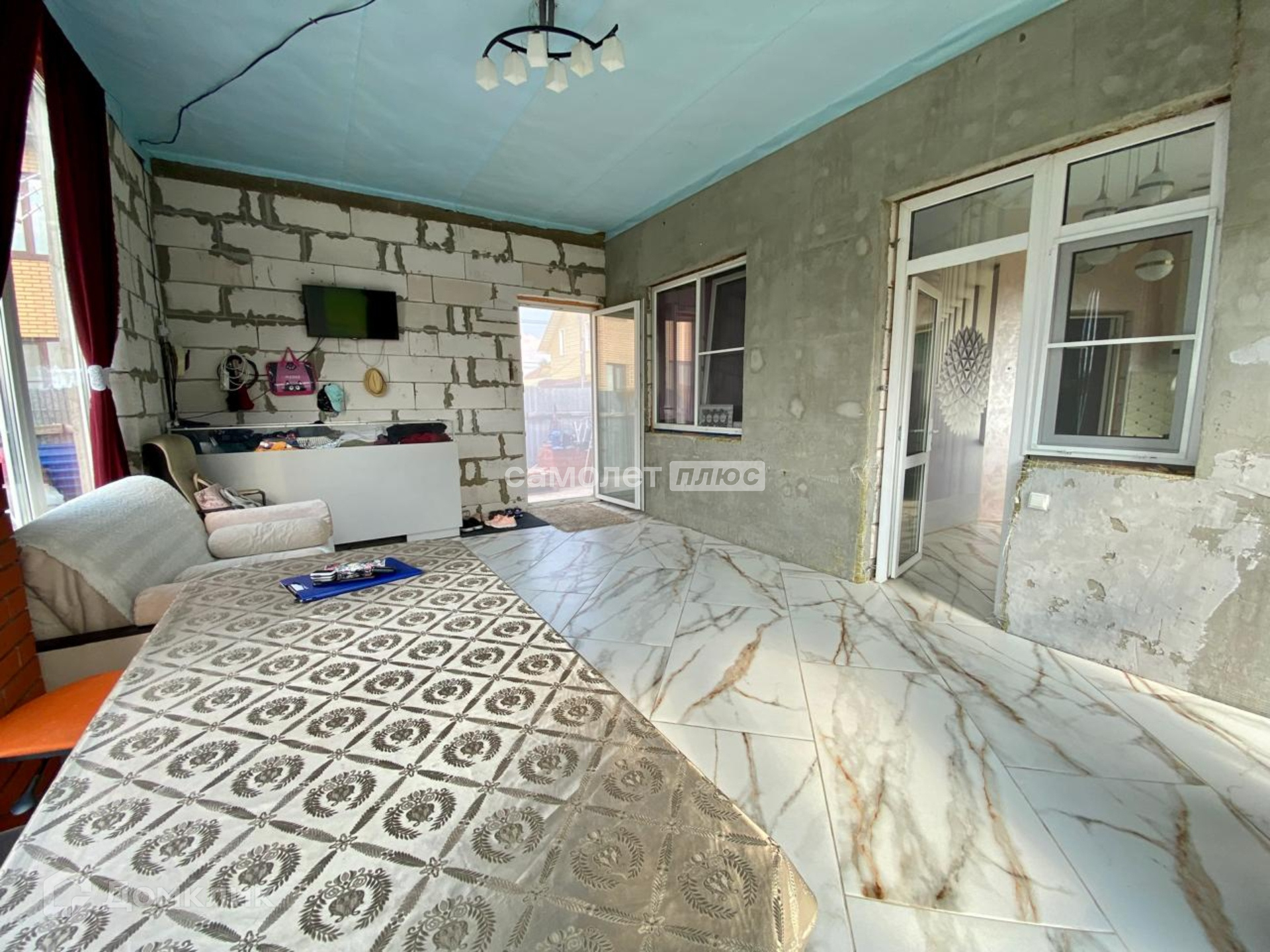 Планировка: 3 (три) комнаты-спальни, большая гостиная комната, кухня, прихожая, гардеробная комната,  с/у. Предусмотрено 2 (два) входа, Коммуникации: магистральный газ, электричество 15 Квт (3 фазы), собственная скважина, септик (откачка не чаще 1 раза в год). Установлен  газовый и электрический котлы. Заведен интернет, спутниковое телевидение.