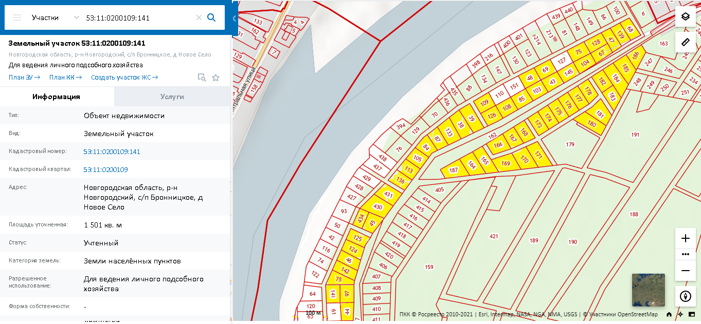 Большой выбор участков на второй линии, кадастровый номер одного из участков на 2й линии 53:11:0200109:75