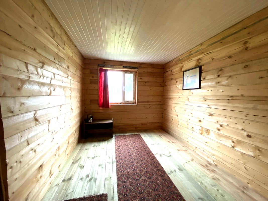 Расположен на ровном участке 16 соток (ИЖС), проведён газ, электричество, колодец с питьевой водой. Огорожен забором из профлиста с четырёх сторон, въездные ворота, асфальтированная дорога.