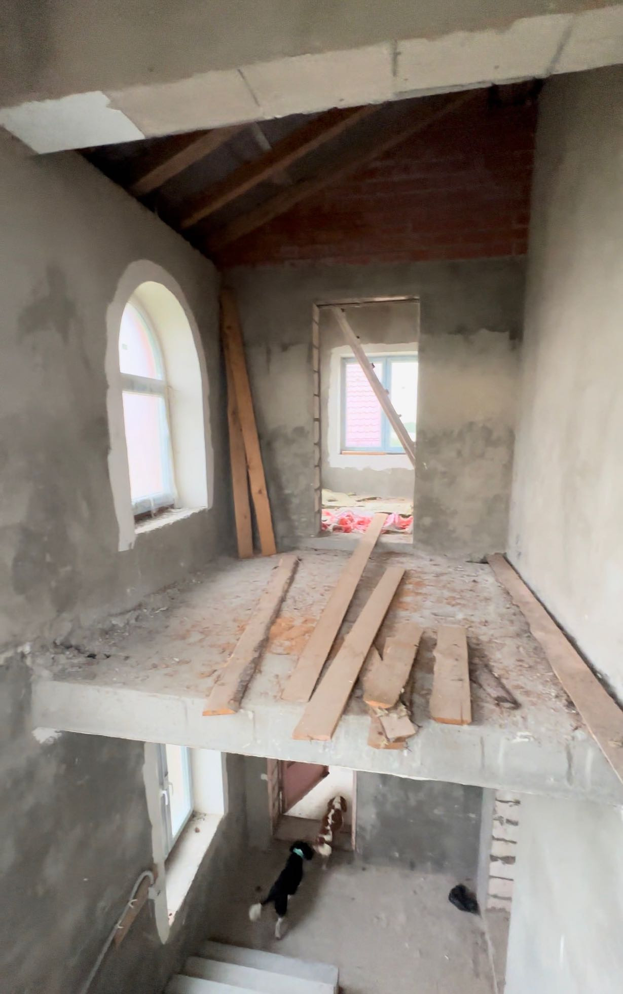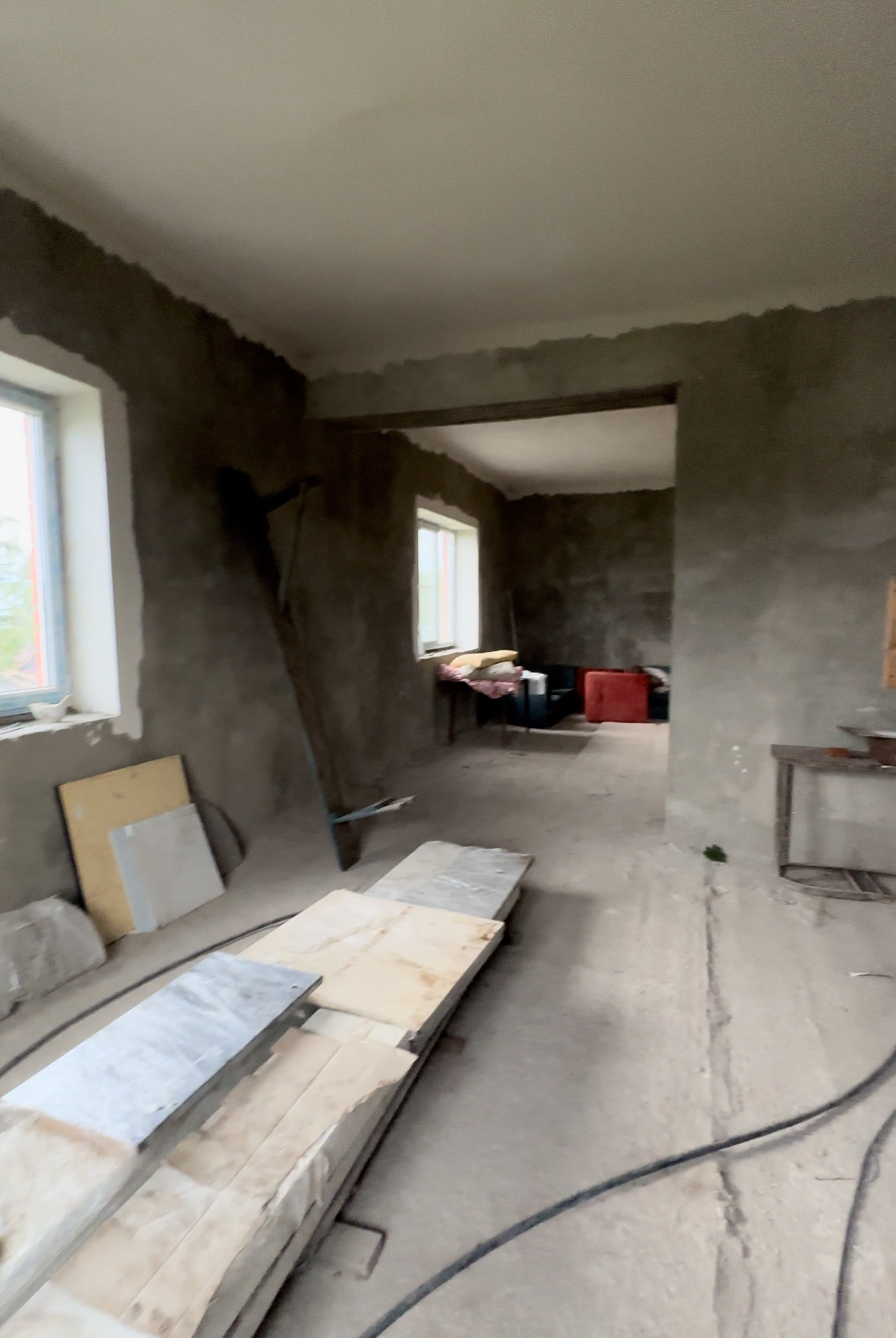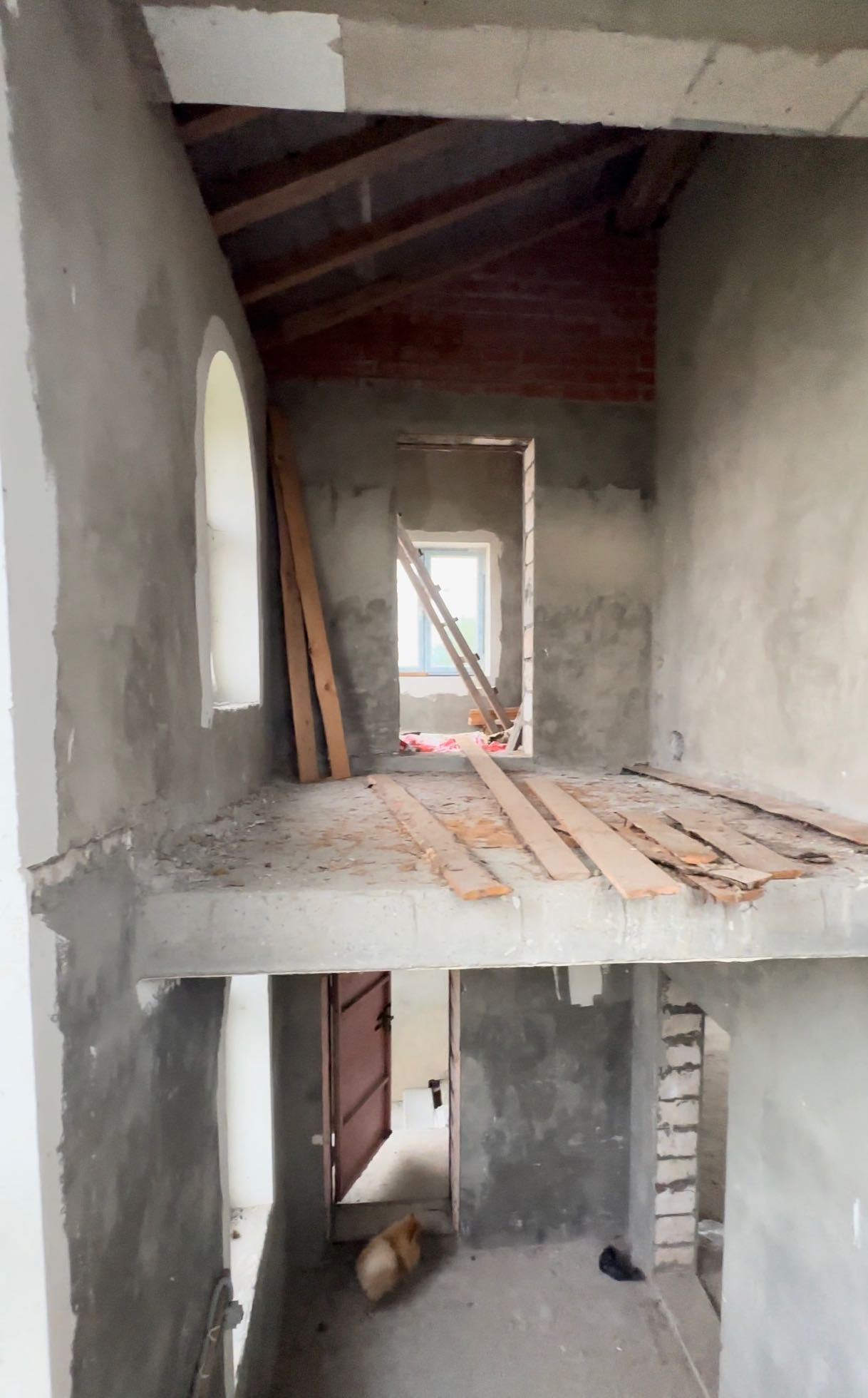Дом полностью построен, без внутренней отделки.