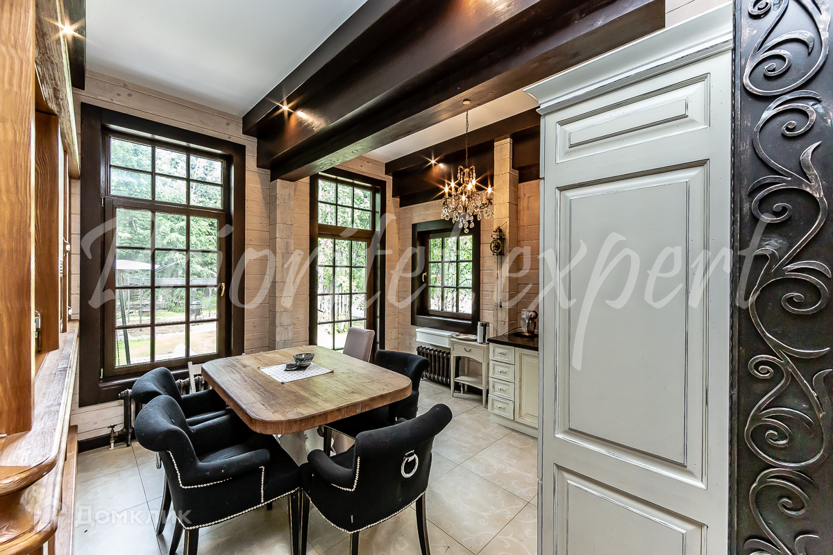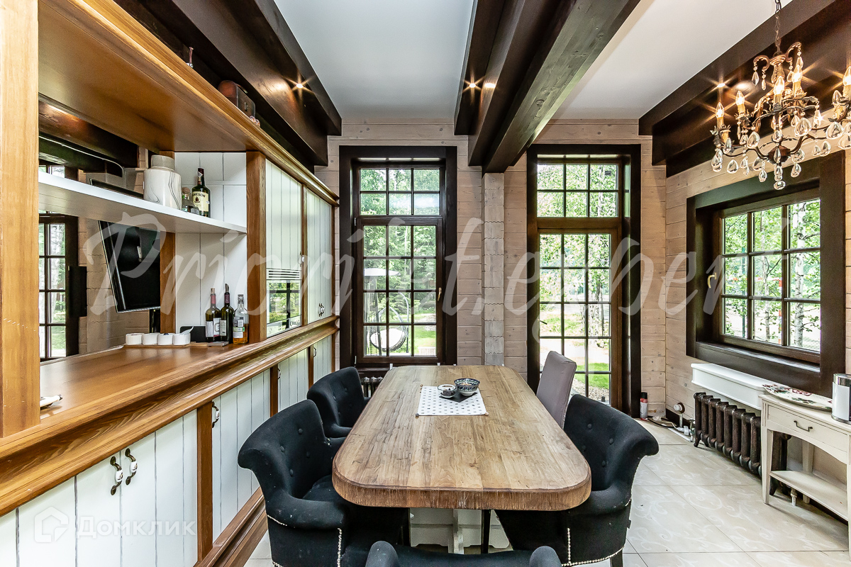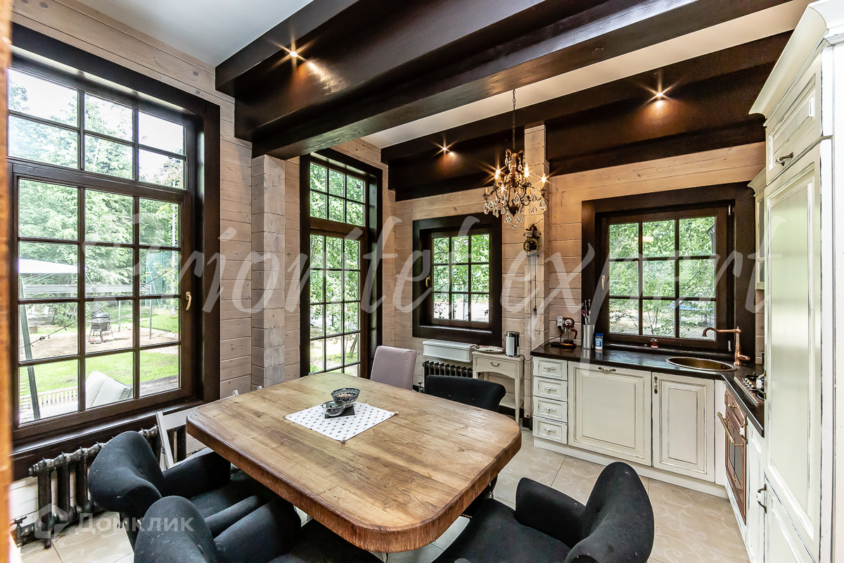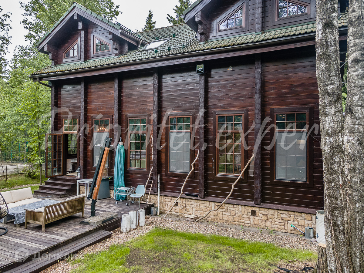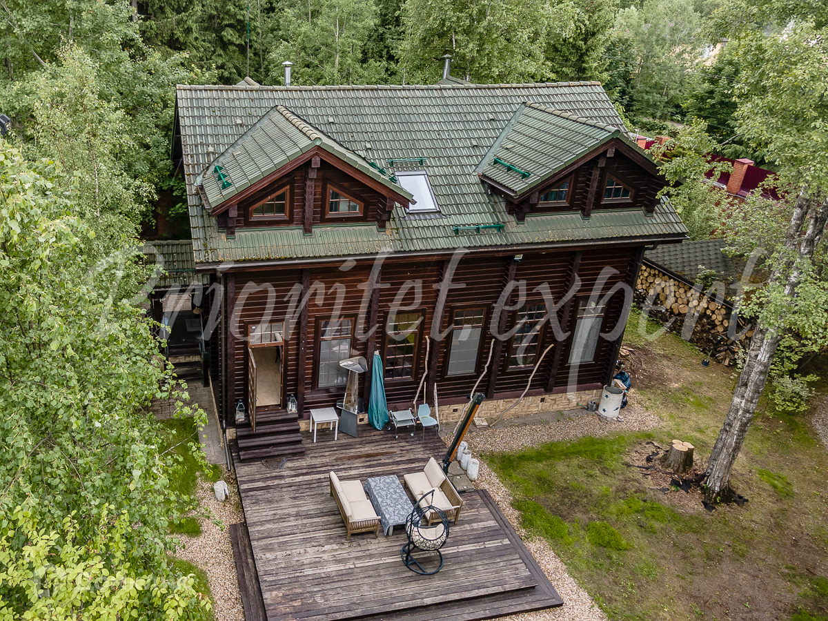 Дом: Загородный дом 210 м2 в охраняемом коттеджном поселке. Дом меблирован, расположен на красивом лесном участке. Материал стен – клееный брус 200 мм, фундамент ленточный, кровля - натуральная черепица.