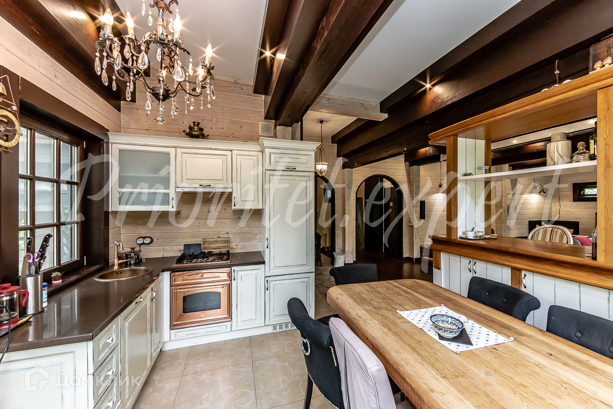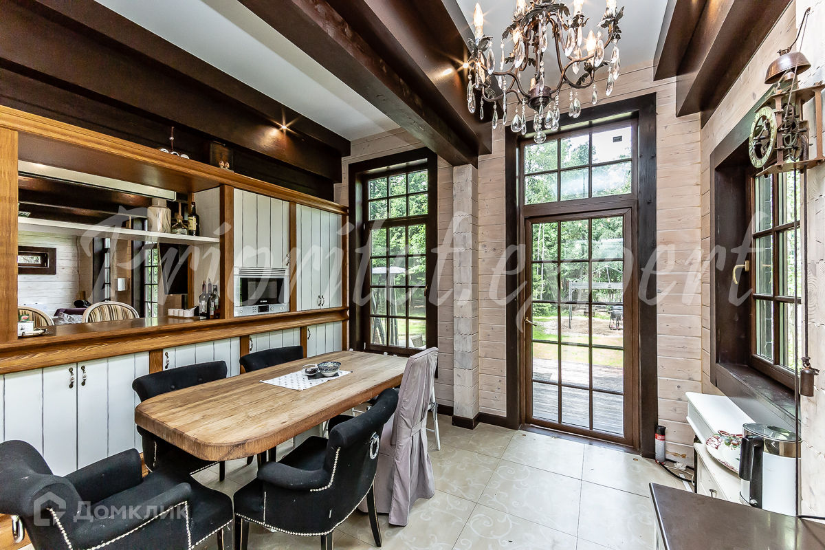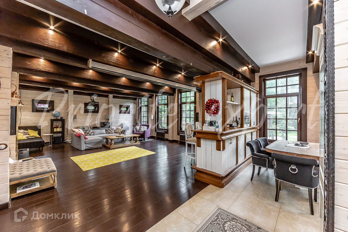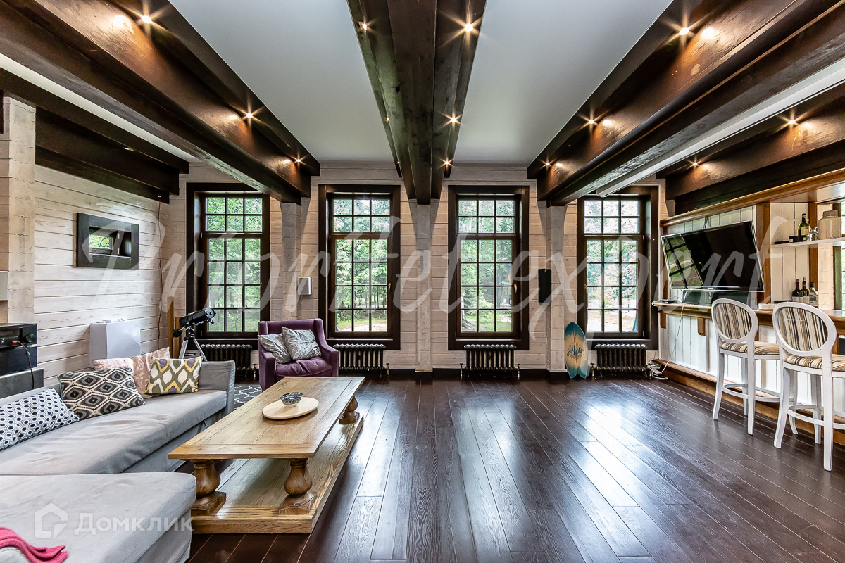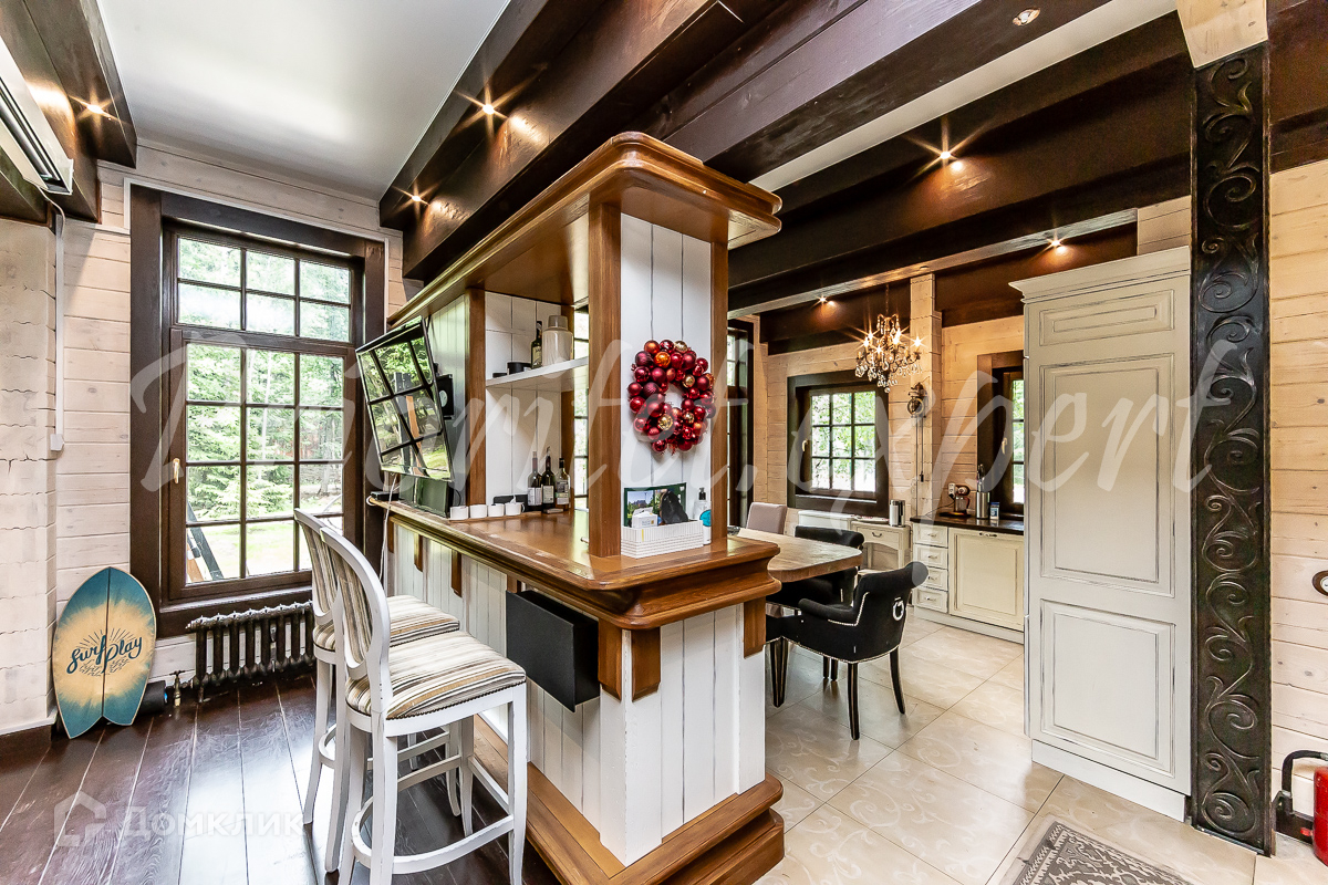 Дом: Загородный дом 210 м2 в охраняемом коттеджном поселке. Дом меблирован, расположен на красивом лесном участке. Материал стен – клееный брус 200 мм, фундамент ленточный, кровля - натуральная черепица.