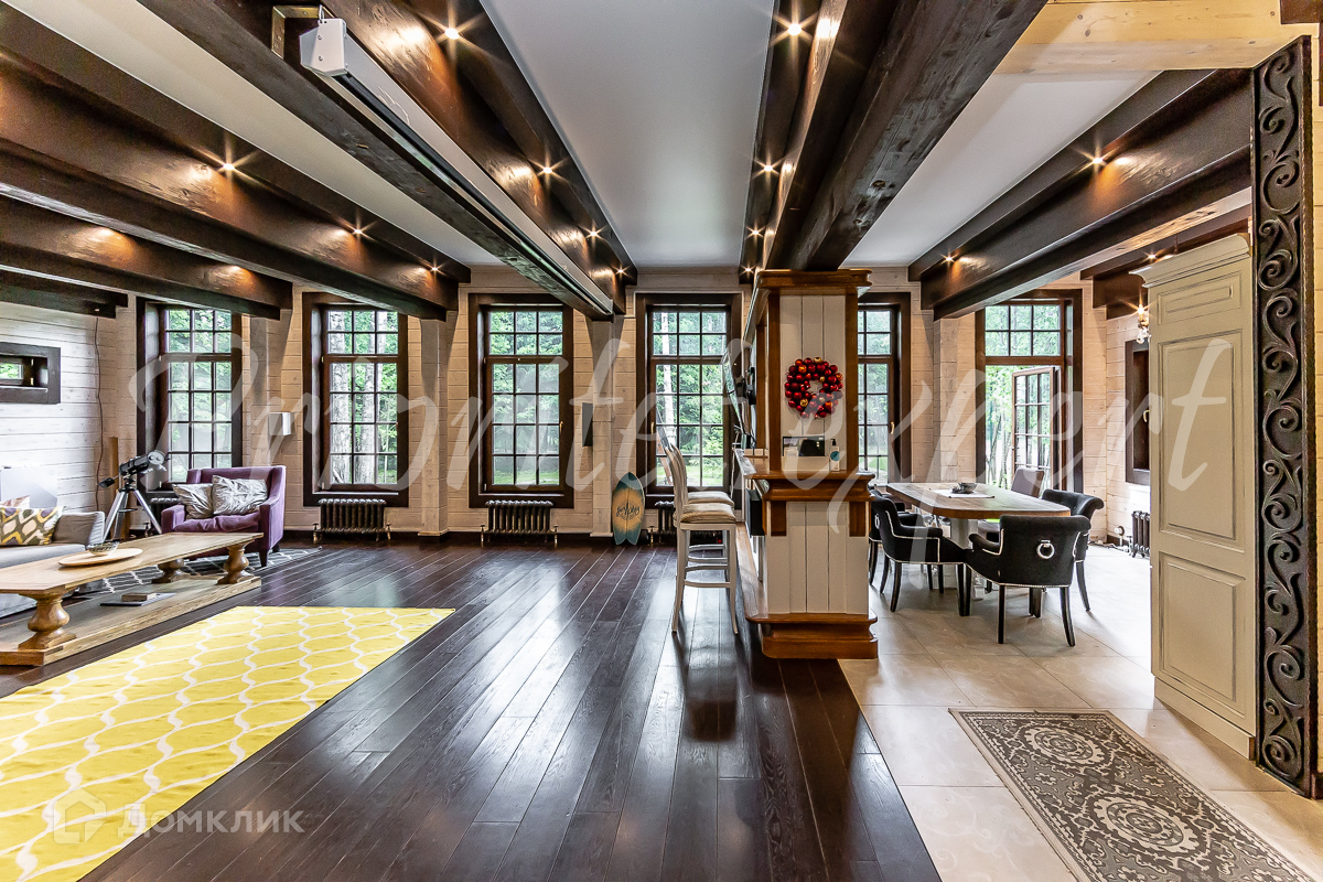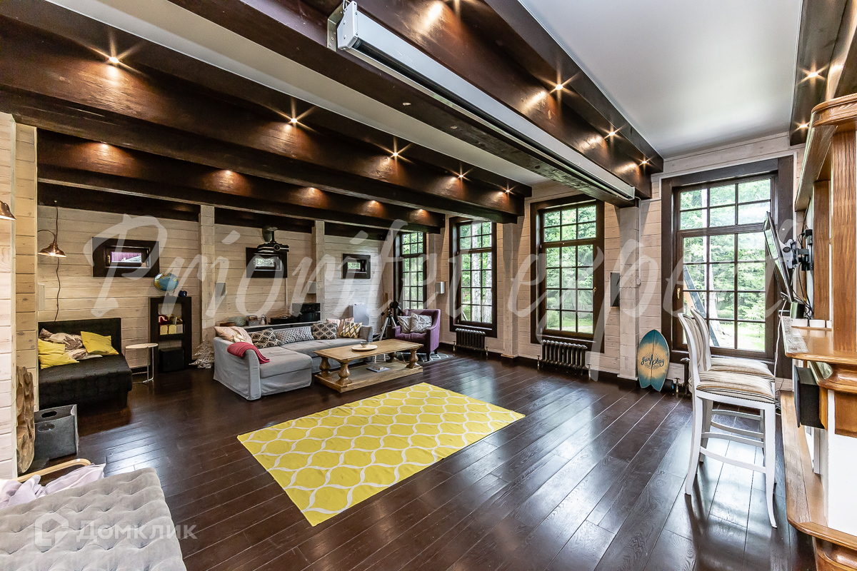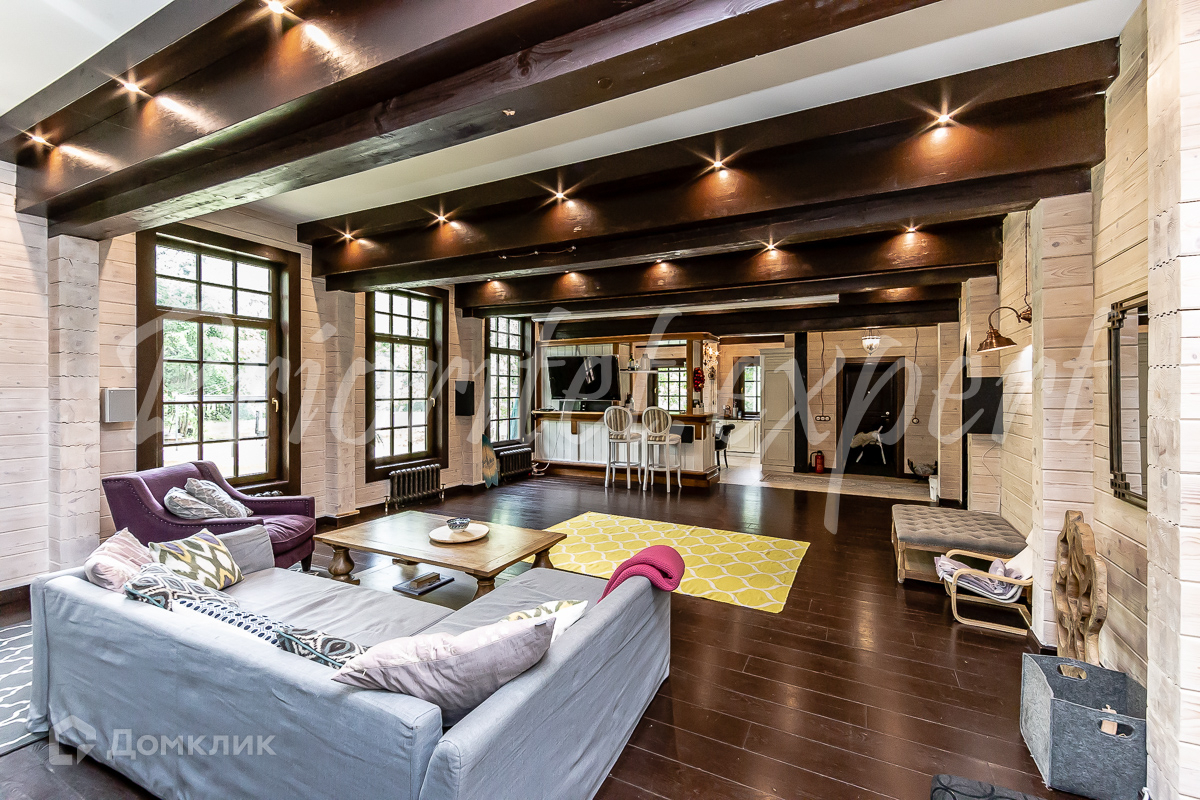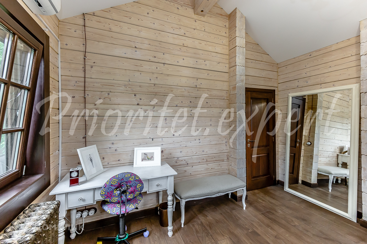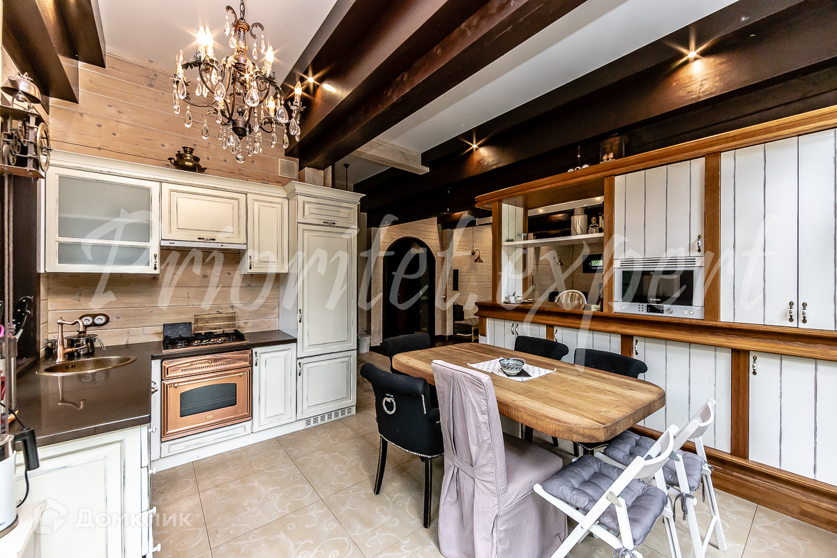 Дом: Загородный дом 210 м2 в охраняемом коттеджном поселке. Дом меблирован, расположен на красивом лесном участке. Материал стен – клееный брус 200 мм, фундамент ленточный, кровля - натуральная черепица.
