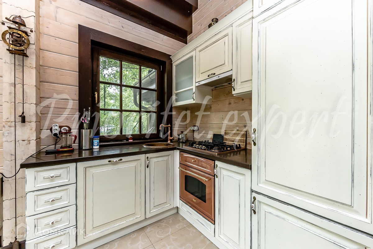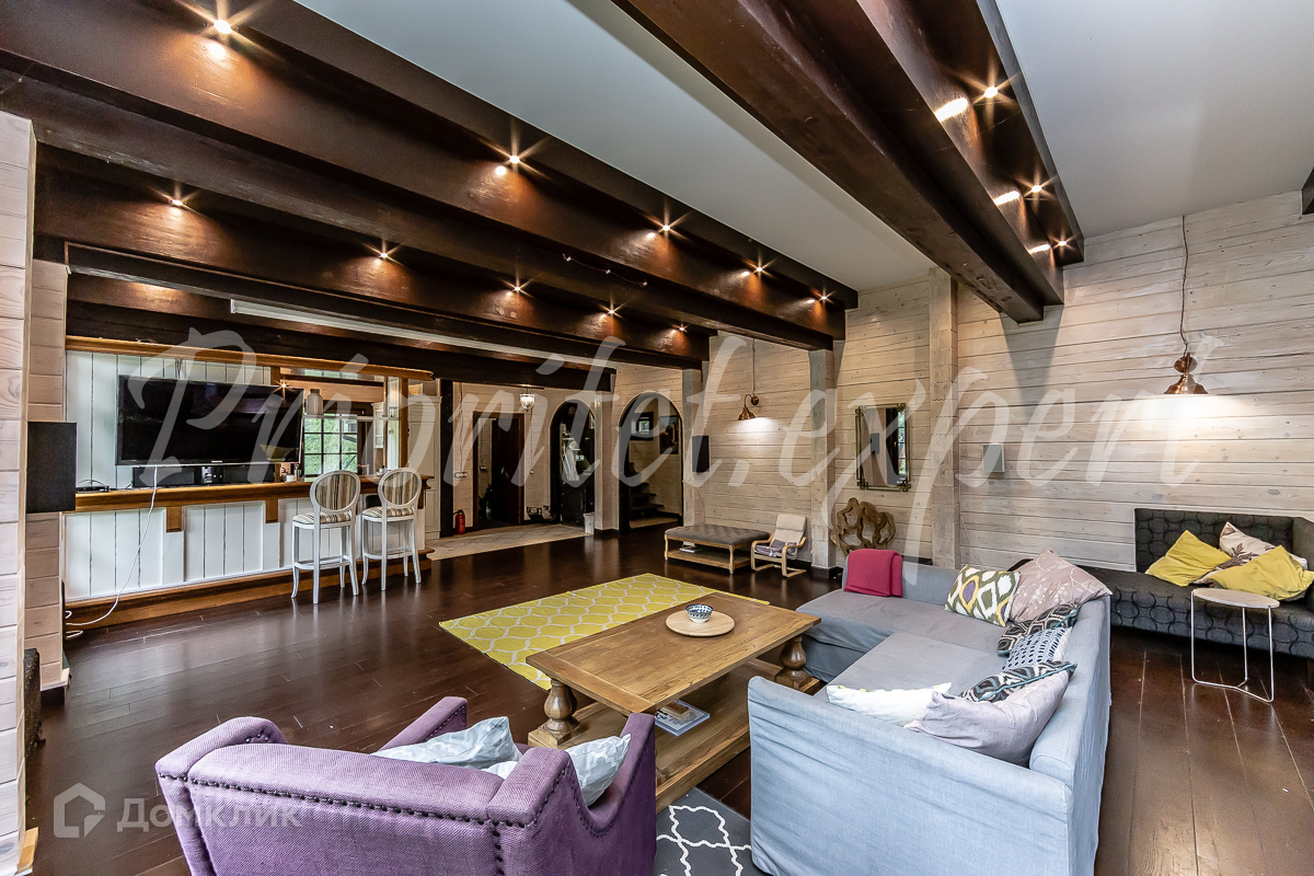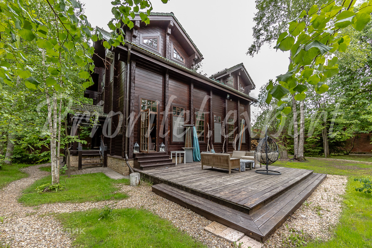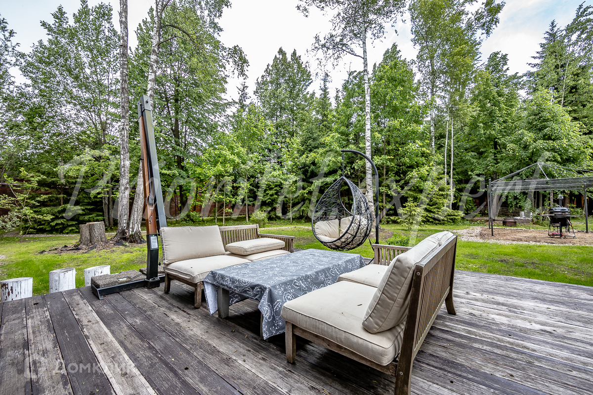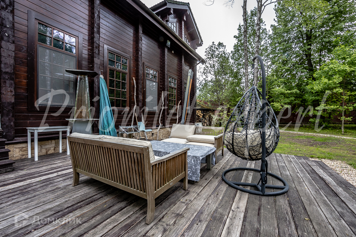 Дом: Загородный дом 210 м2 в охраняемом коттеджном поселке. Дом меблирован, расположен на красивом лесном участке. Материал стен – клееный брус 200 мм, фундамент ленточный, кровля - натуральная черепица.