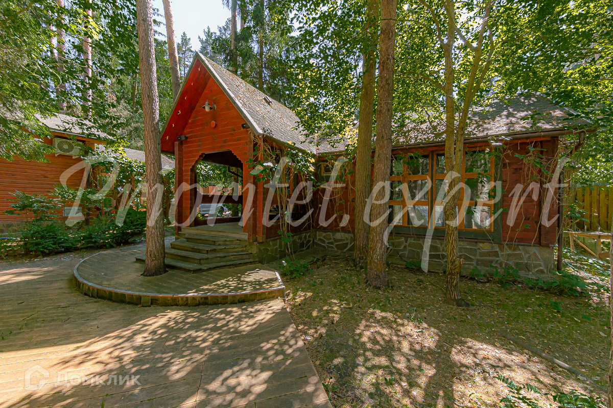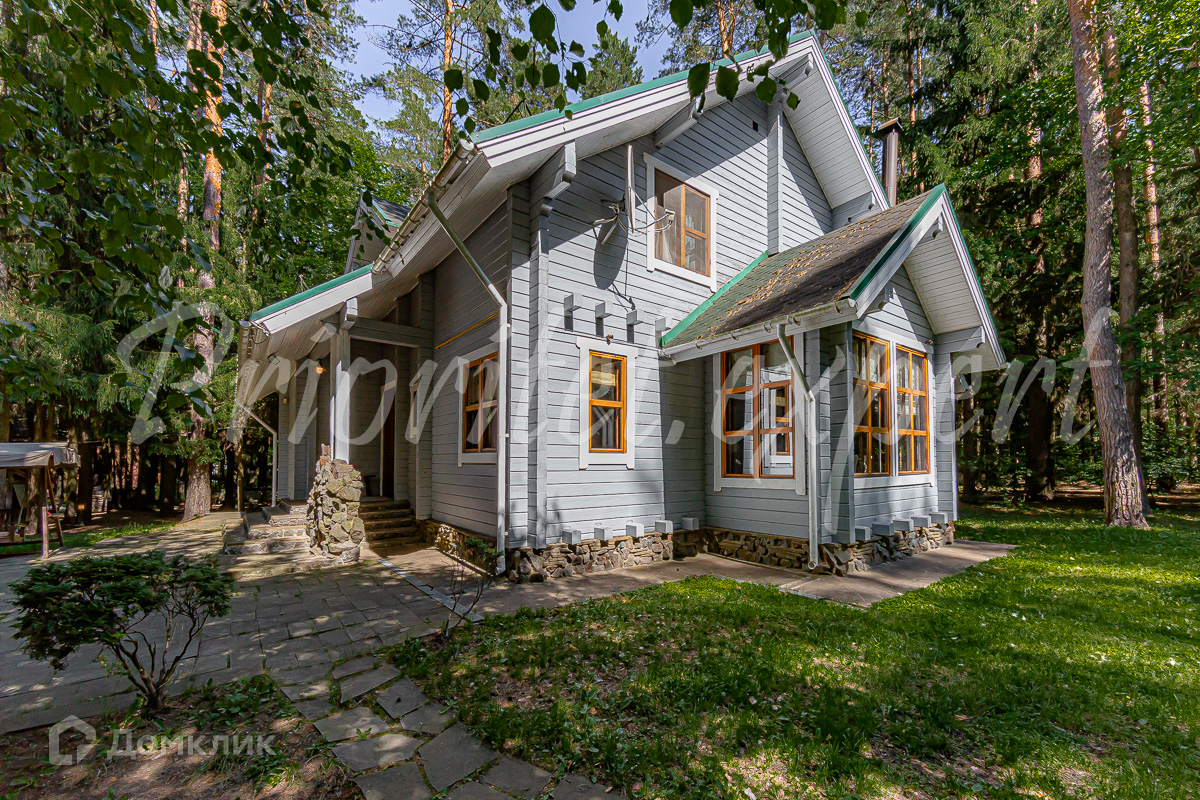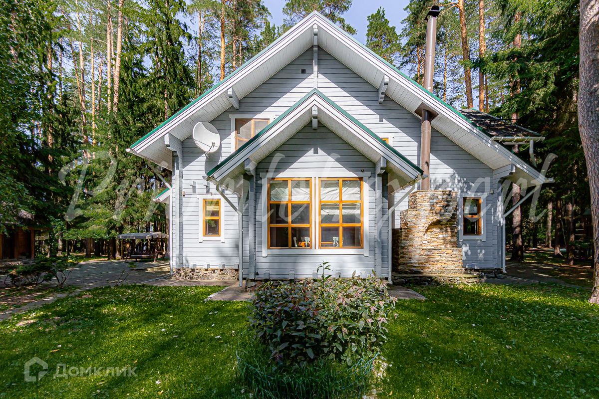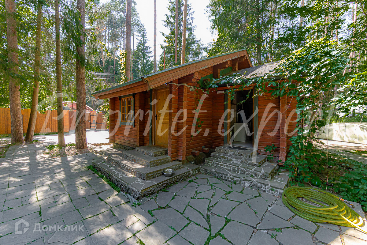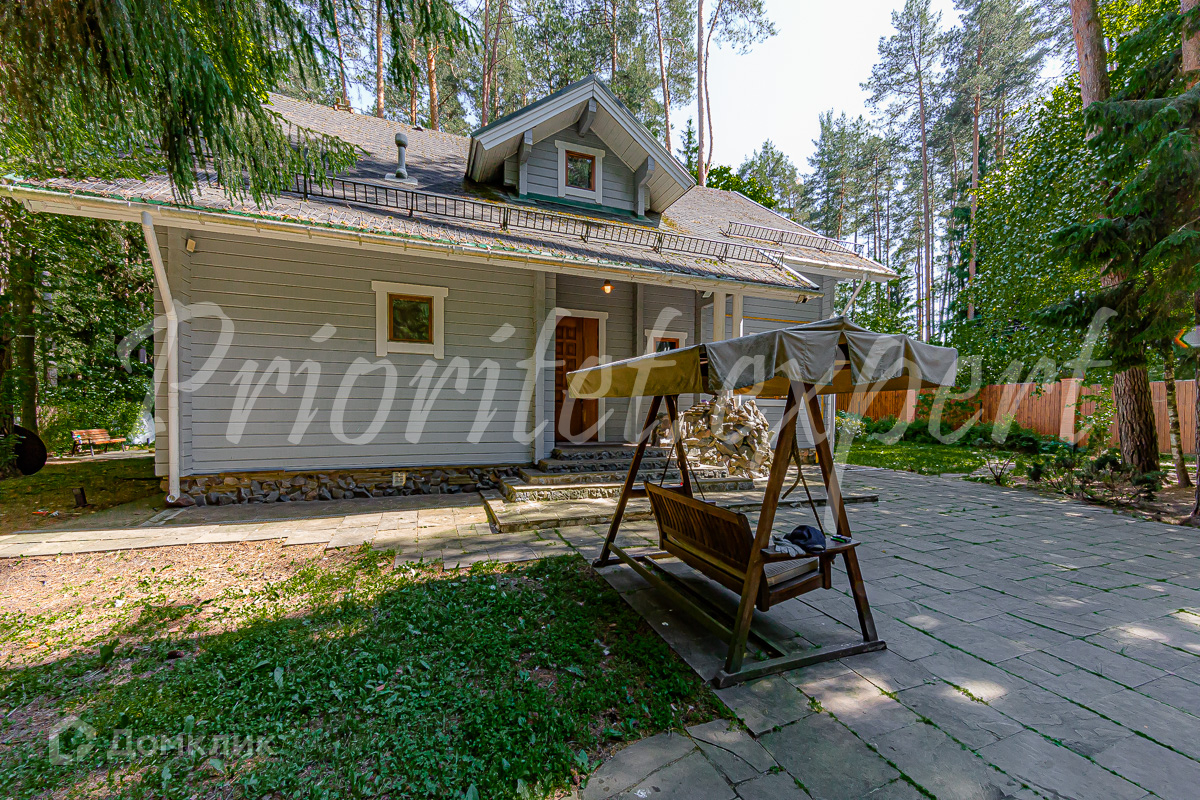 Загородный дом с баней из клееного бруса в окружении леса. Год постройки 2002. Материал стен – клееный брус , фундамент ленточный, кровля - метало- черепица.