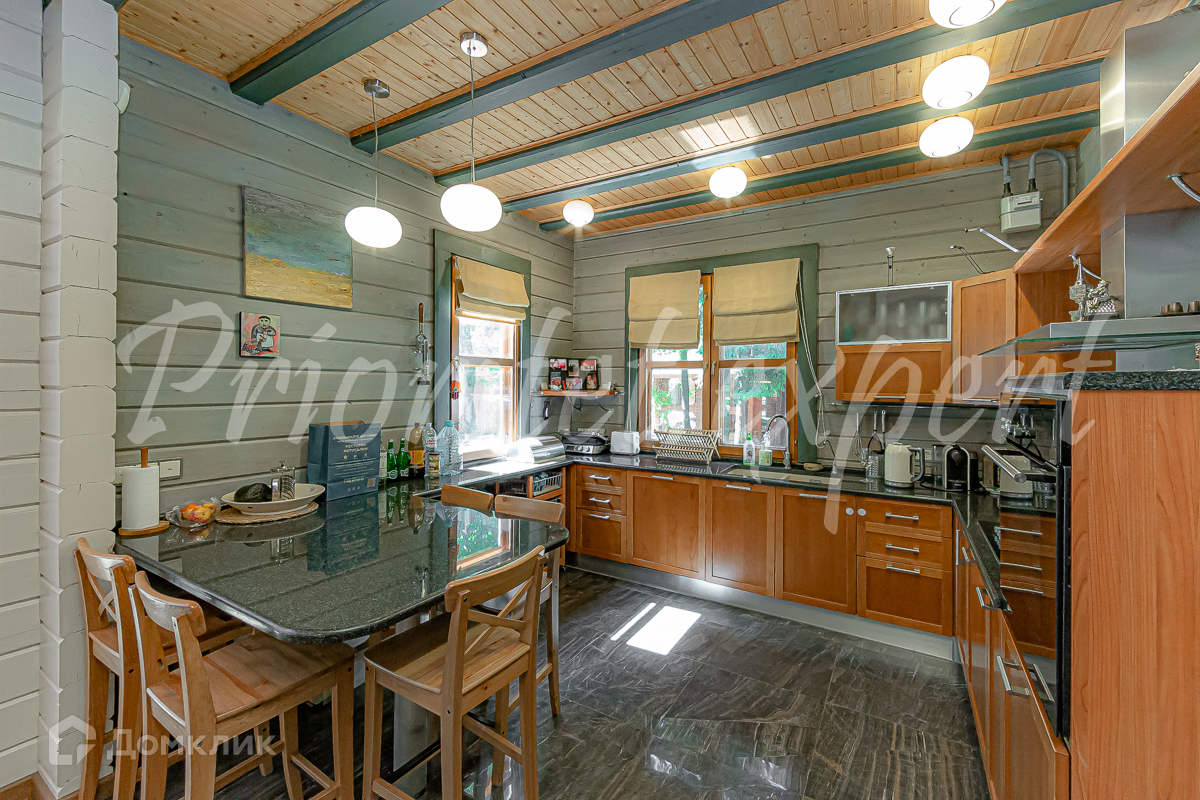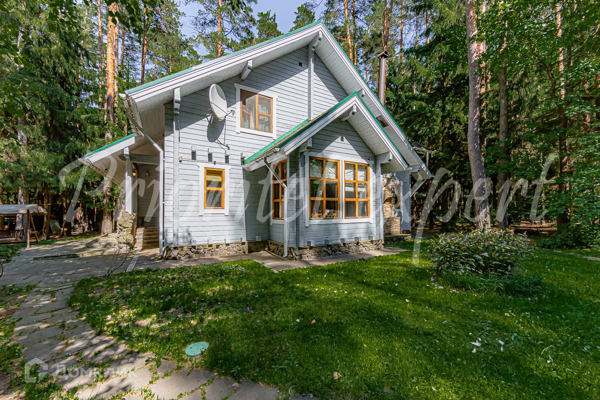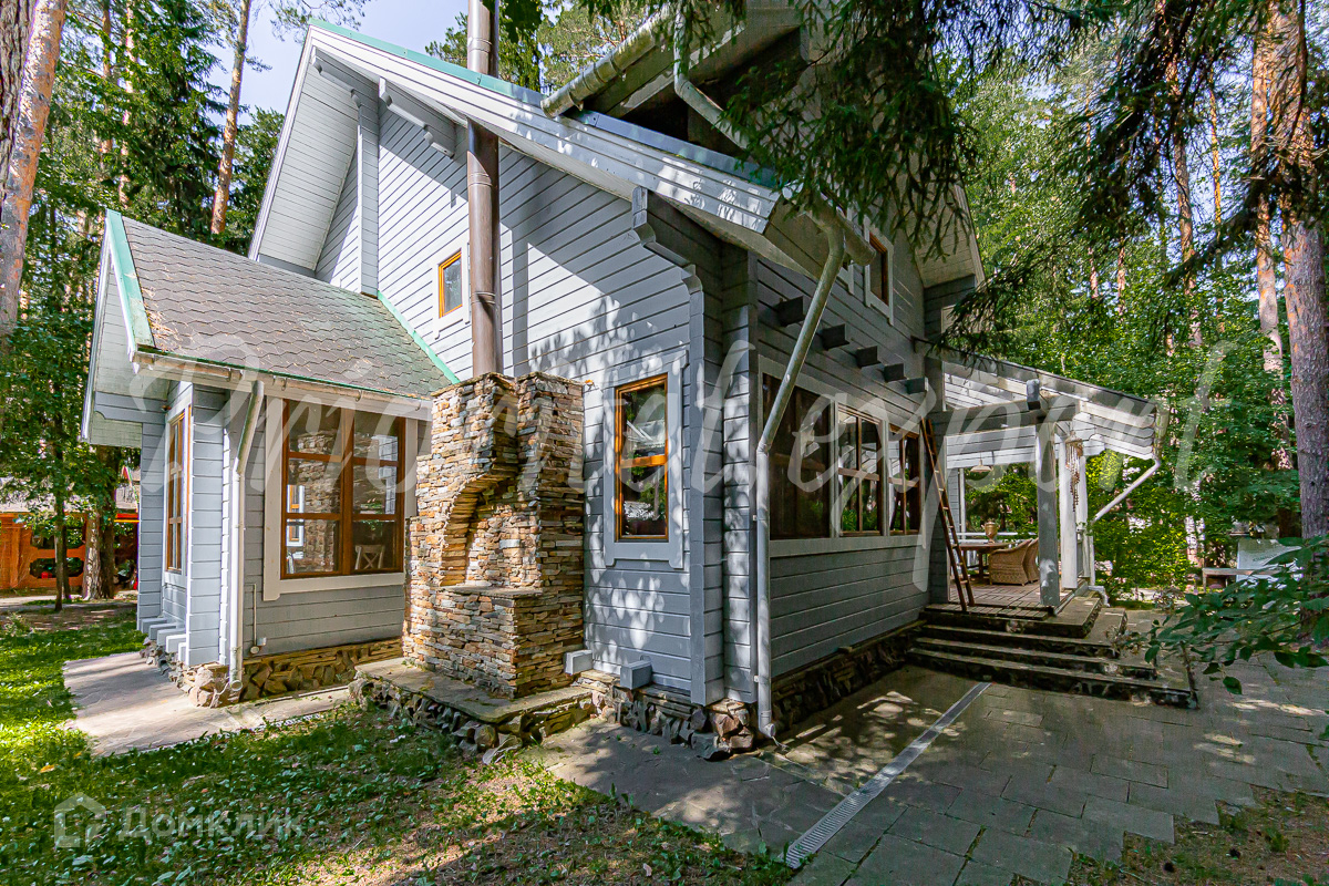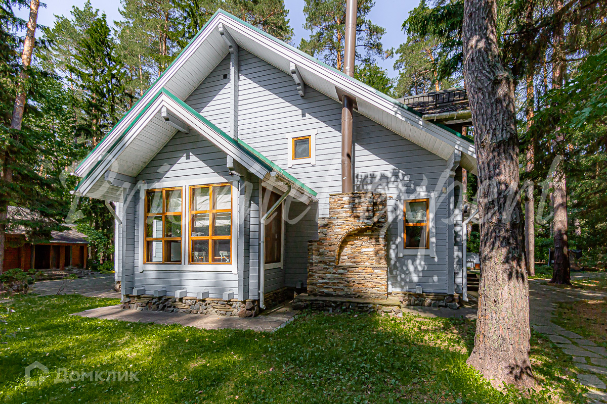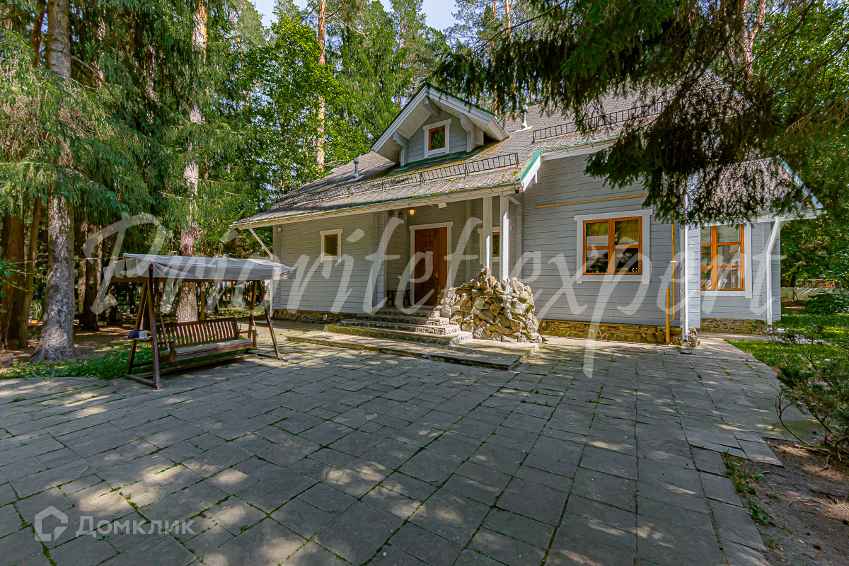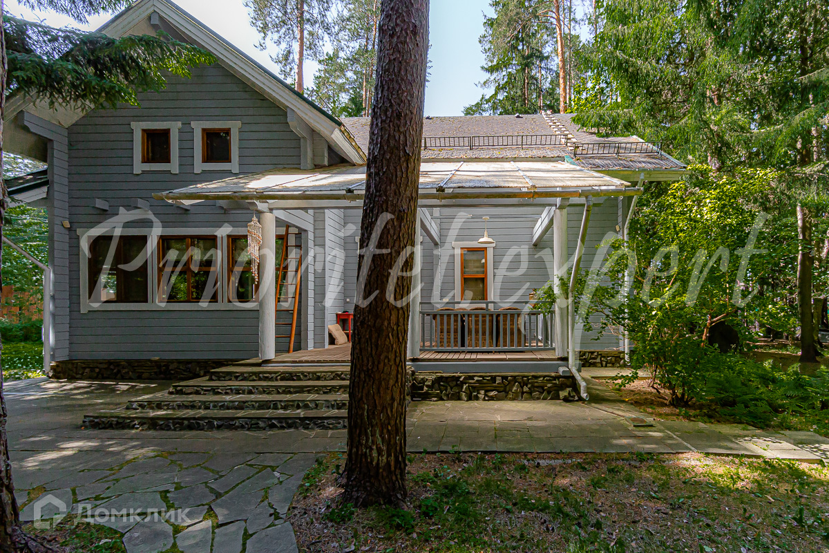 Загородный дом с баней из клееного бруса в окружении леса. Год постройки 2002. Материал стен – клееный брус , фундамент ленточный, кровля - метало- черепица.