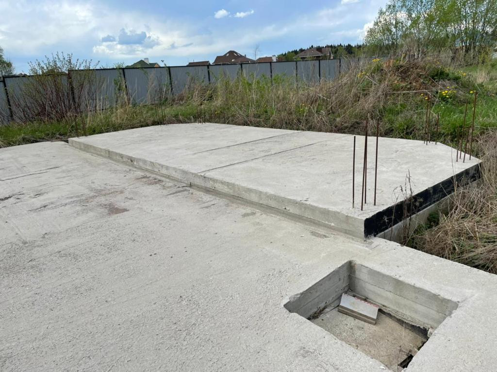 На участке монолитный фундамент под дом 230 кв.м. (12х11,3м) (есть проект дома).
