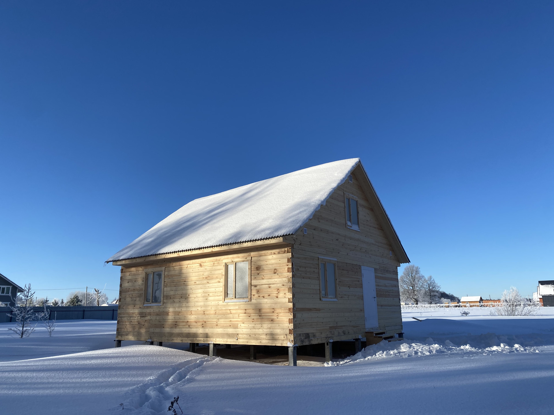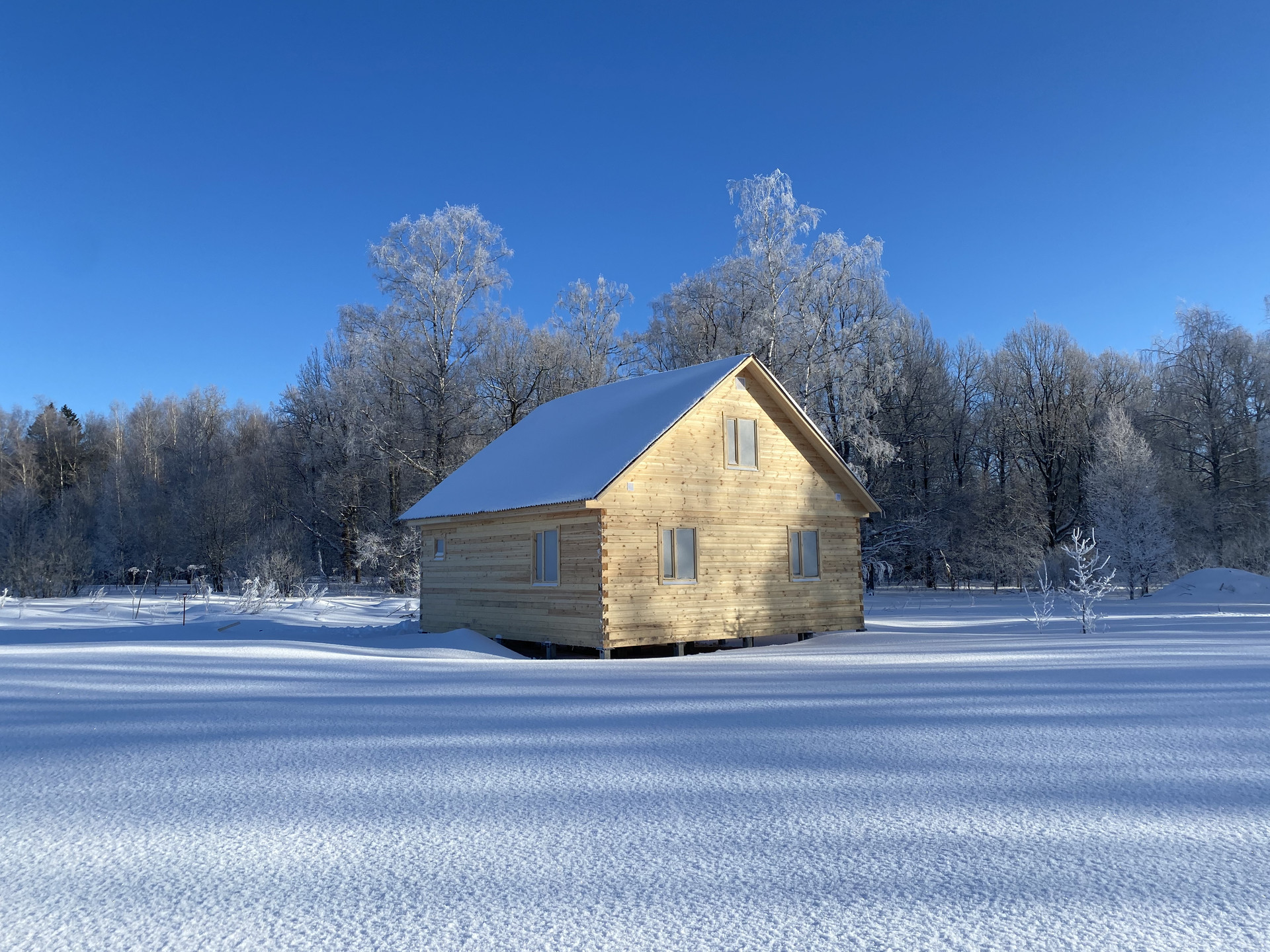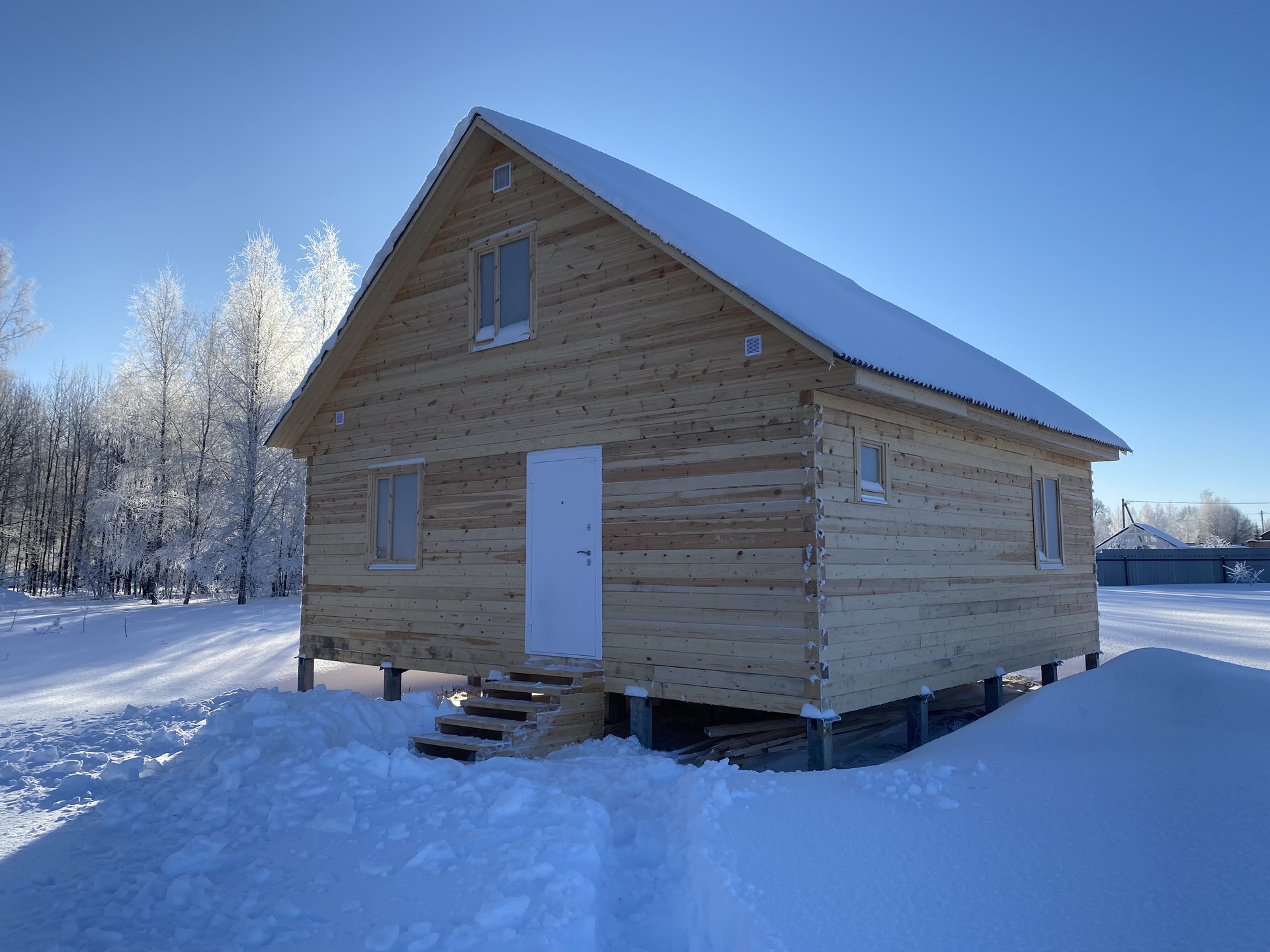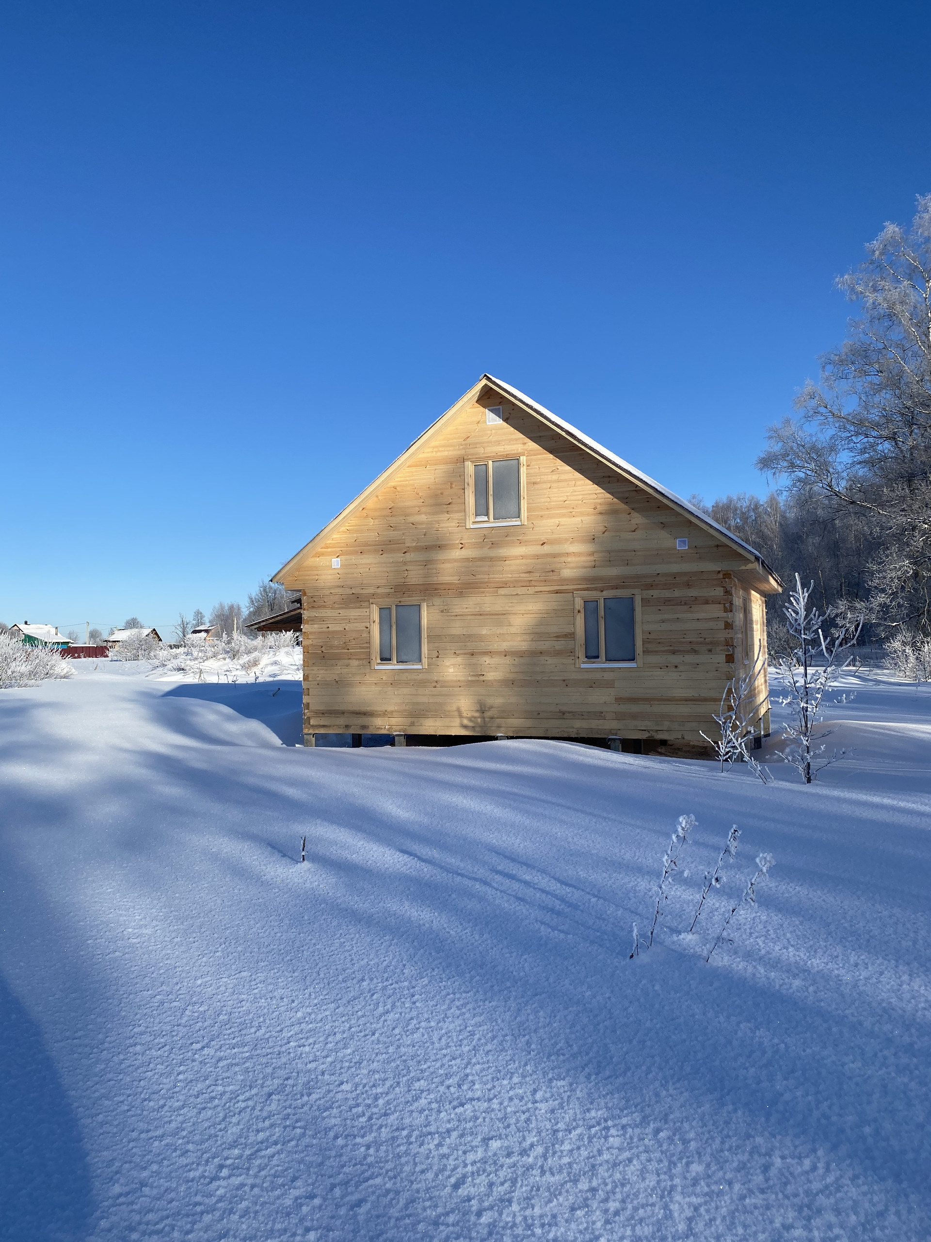 - Дом выполнен из профилированного бруса 140х140, размер дома 8х8 метров, построен в ноябре 2023 года