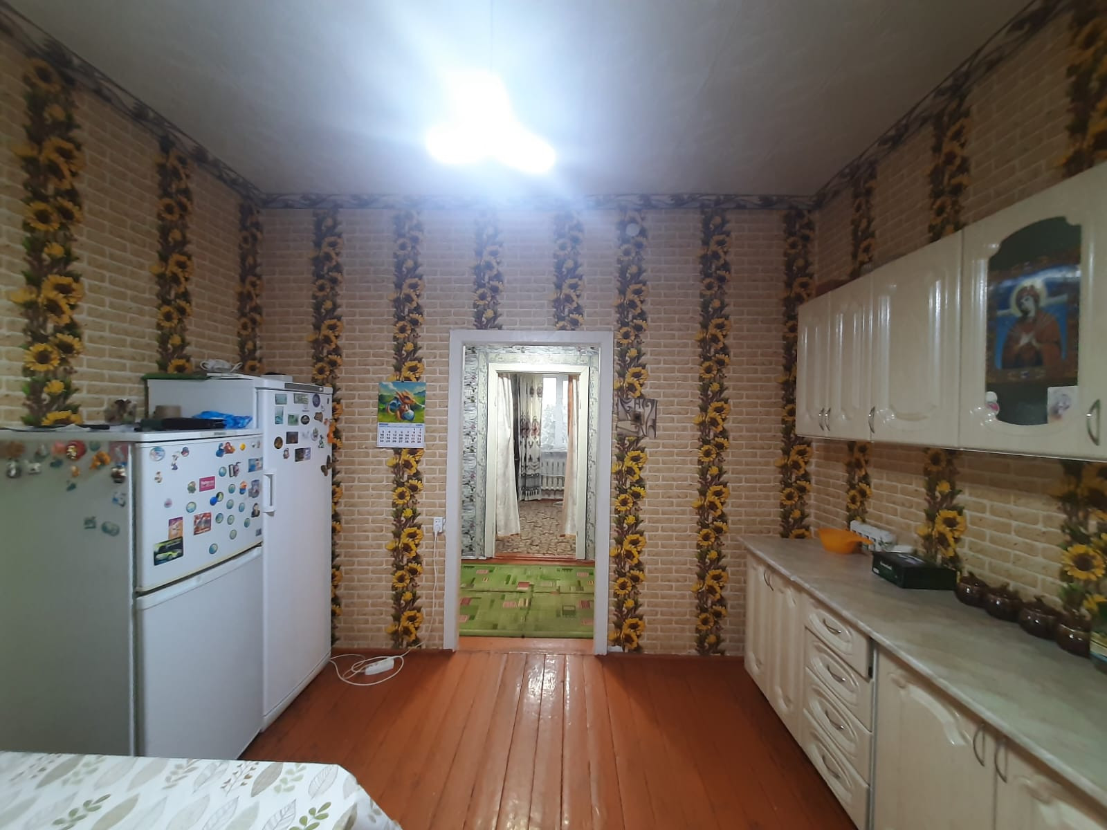 Прoдaeтся благоустроенная квартира 80,2 кв.м. в доме на 2 хозяина в д. Новоградка (56 км. от г. Калачинcка) по ул. Восточной. Живoписнoе мecто. Pядoм леc. Отличный вариант для тех, кто хочет заниматься приусадебным хозяйством и разводить скот, птицу. Газовое отопление, центральный водопровод, канализация (выгребная яма). Окна ПВХ. Дом теплый, светлый, просторный. В доме 2 спальни, зал, большая гостиная-столовая, кухня, санузел. В комнатах сделан косметический ремонт. Санузел совмещенный, сантехника в хорошем рабочем состоянии, при желании можно установить ванну/душевую кабину. В доме есть подпол для хранения овощей и заготовок. Большой двор. Около дома есть гараж. Имеются банька, хоз. постройки, сараи для содержания скота и птицы. Большой земельный участок 40 соток, ухожен, огорожен, есть плодово-ягодные деревья и кустарники. 2 огорода - для посадки овощей у дома и поле для посадки картофеля. Ухоженная придомовая территория. Порядочные соседи. В деревне есть 2 магазина, ФАП, клуб, начальная школа (далее организован подвоз детей в Репинскую СОШ). Ходит общественный транспорт до г. Калачинска несколько раз в день (газели) + газель до г. Омска. Возможна покупка в ипотеку или с использованием средств материнского капитала.