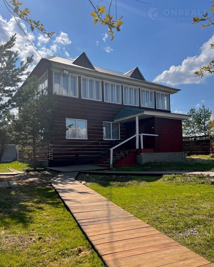 Двухэтажный дом расположенный рядом с берегом реки Ангара