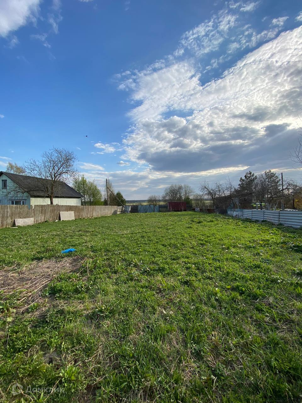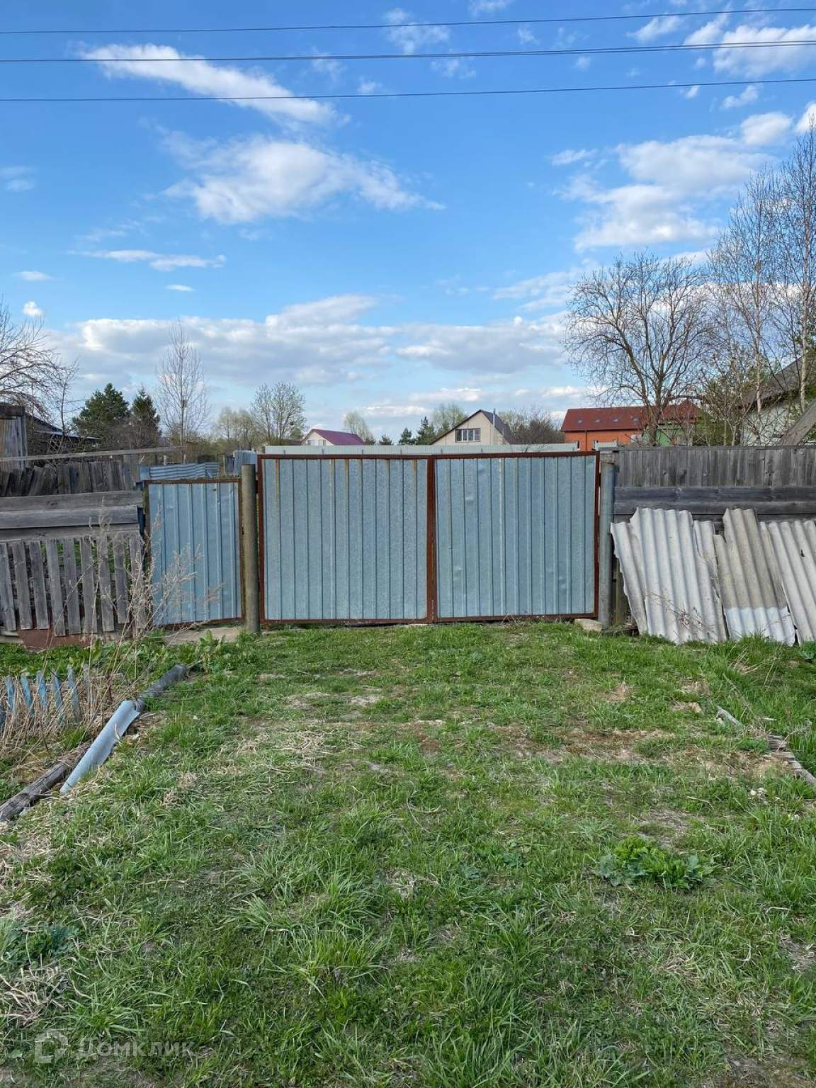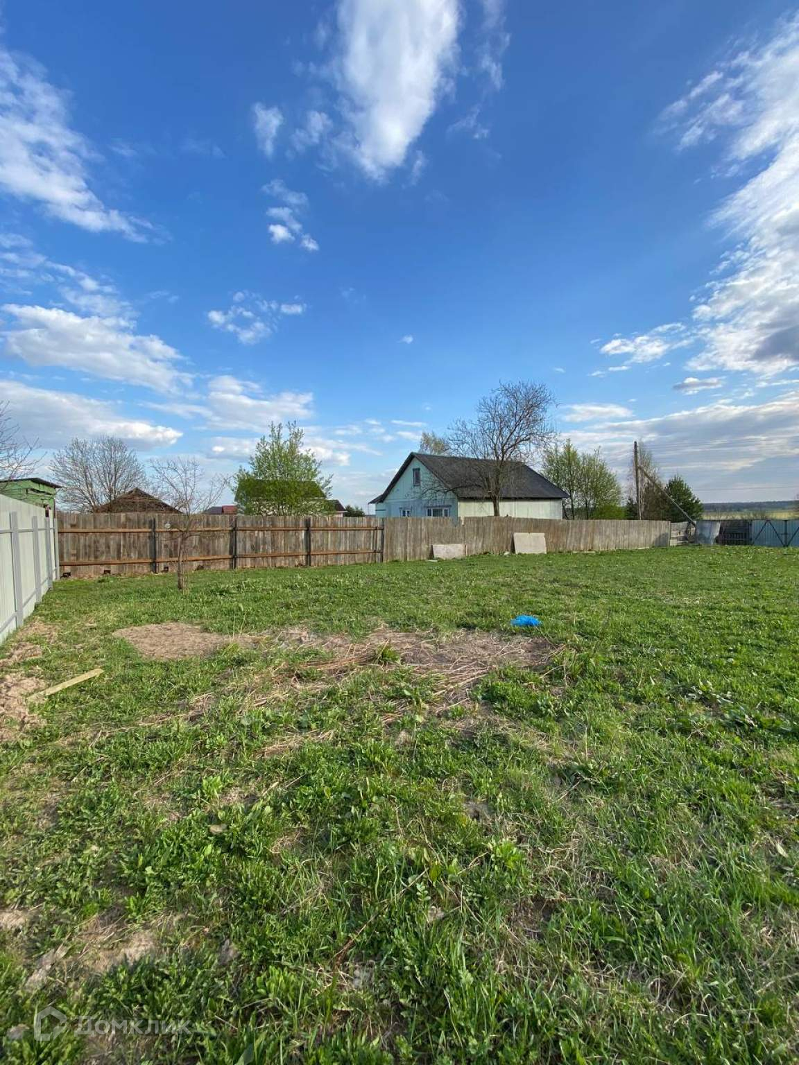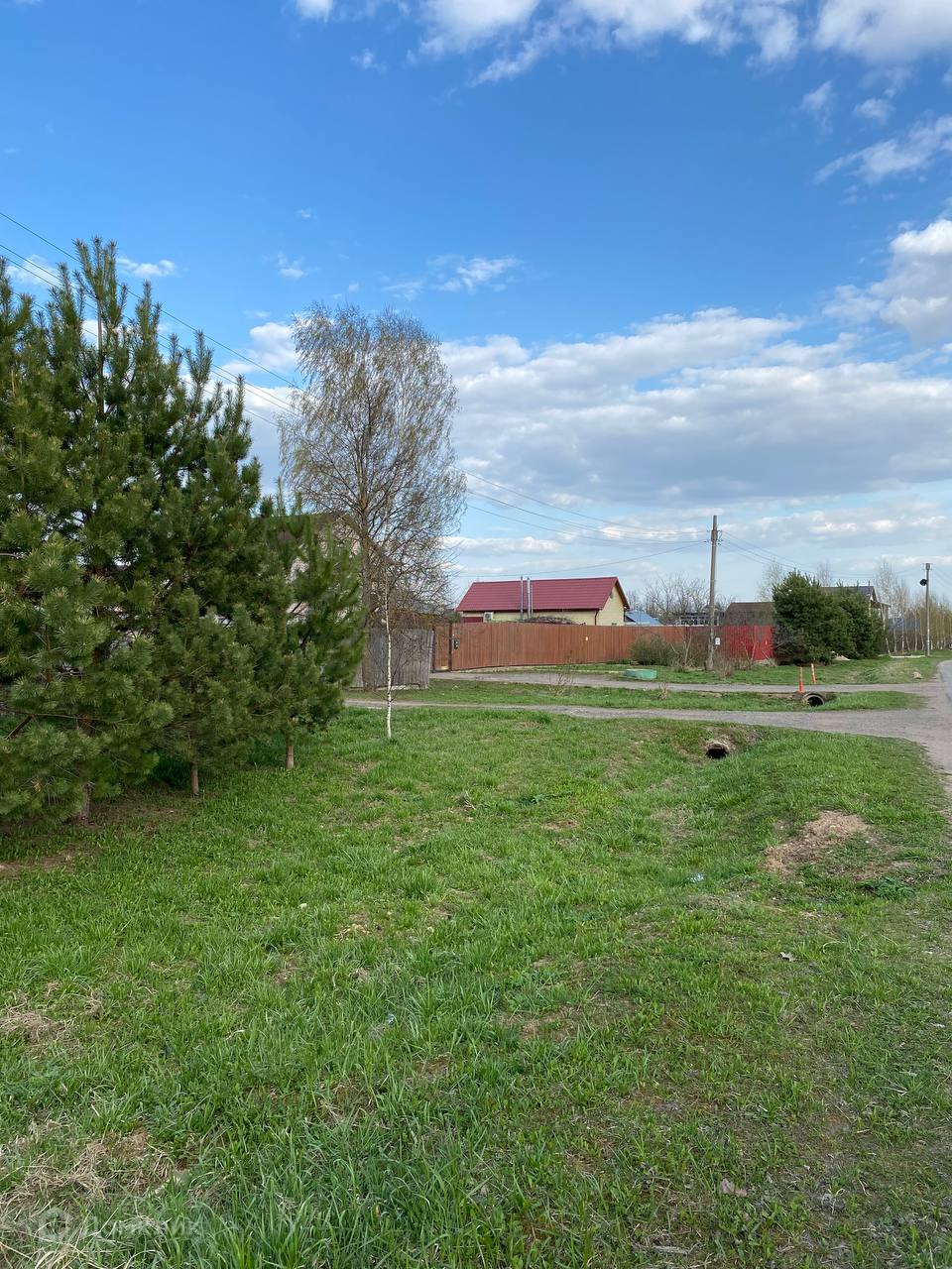 Участок ровный, правильной формы. Коммуникации по границе (электричество, газ, центральное водоснабжение). Огорожен забором. Асфальтированный подъезд. Круглогодичное проживание, приличные соседи. На участке стоит вагончик (бытовка), кольца для септика и бетонные плиты, которые можно будет использовать при строительстве. В дальнейшем оформление дома происходит по упрощённой процедуре - по дачной амнистии, с возможностью прописки.
