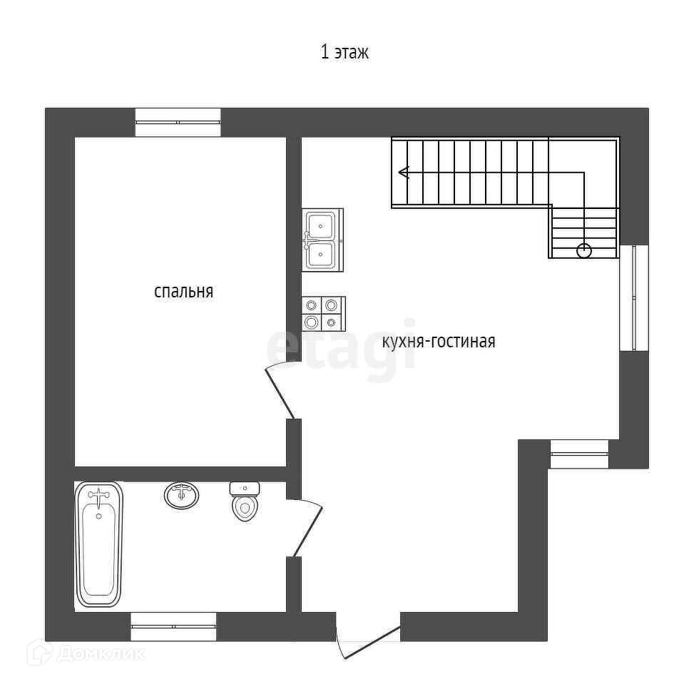 В доме: на первом этаже расположена, кухня - гостиная, совмещенный санузел, бойлерная, спальня;