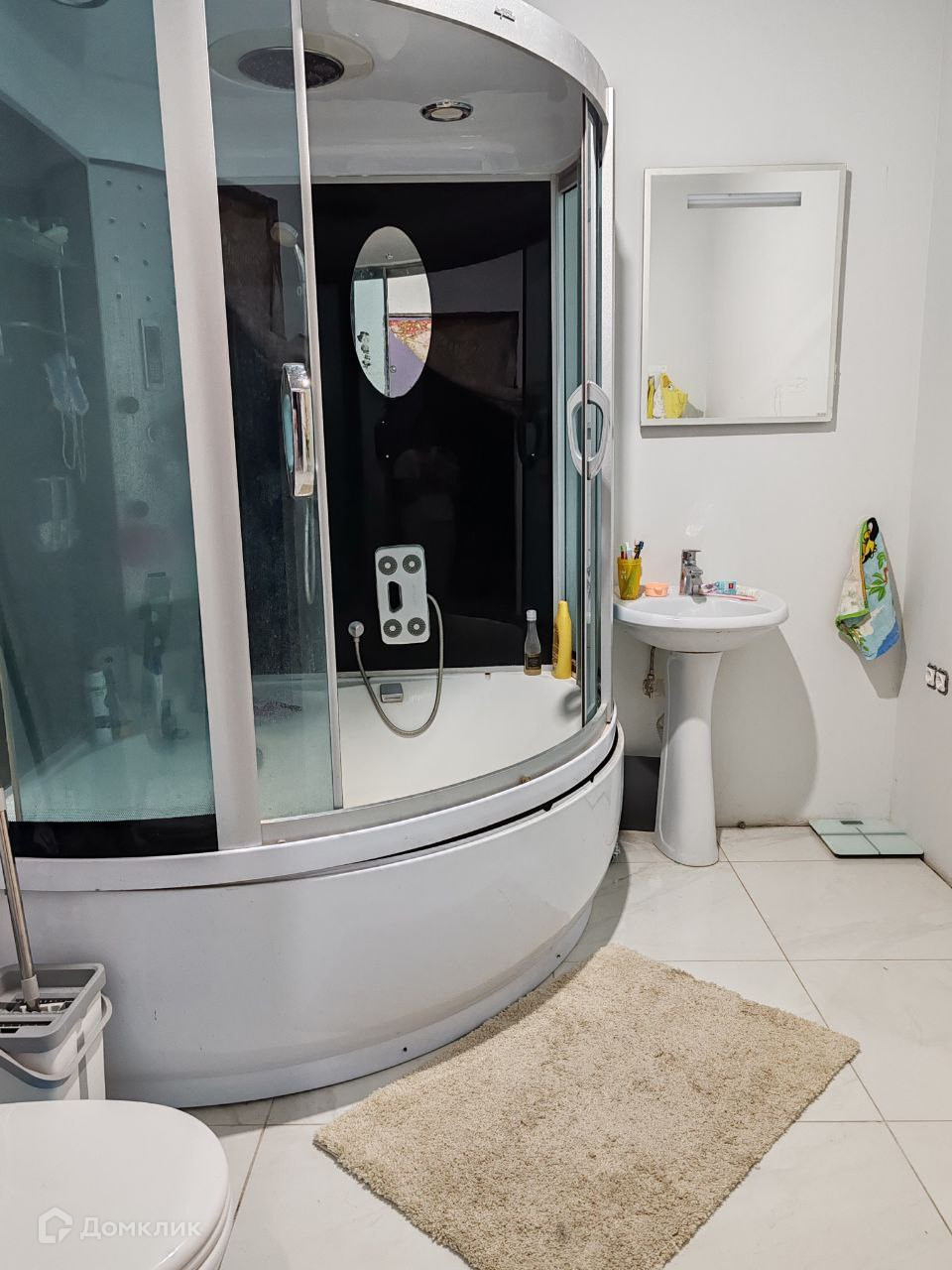 Остаётся кухонный гарнитур, посудомоечная машина, душевая кабина, в сан узле остаётся все, имеется встроенный гигиенический душ.