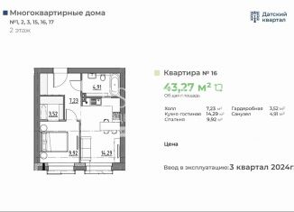 Однокомнатная квартира на продажу, 39.3 м2