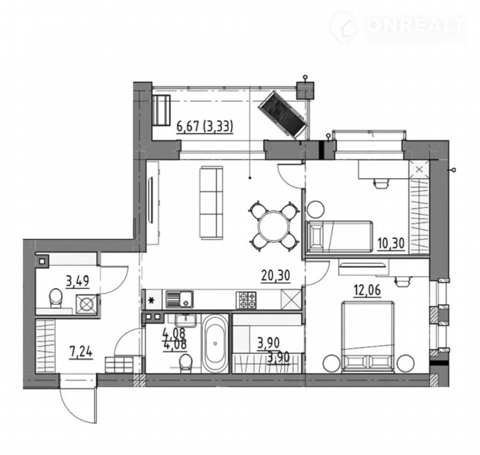 Общая площадь 64.8 м2