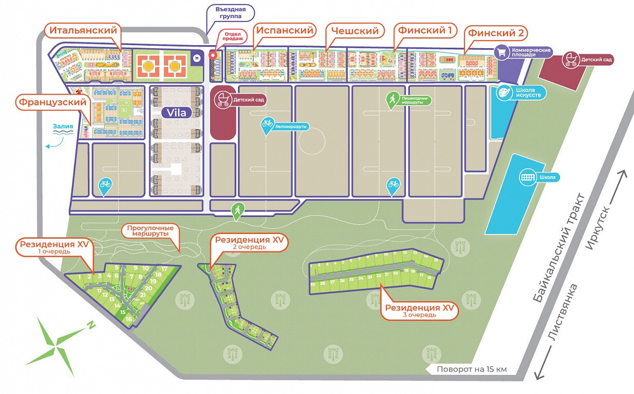 Рядом детские и спортивные площадки, на въезде магазинчики