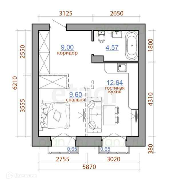 Общая площадь 37 м2