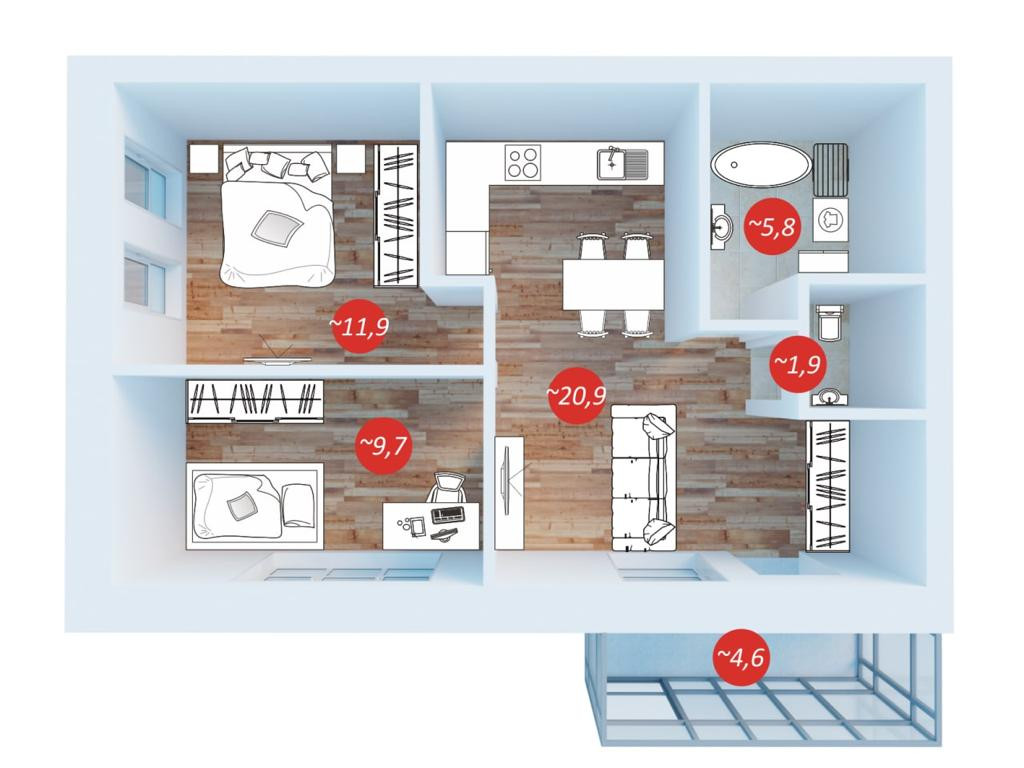 Общая площадь 55 м2
