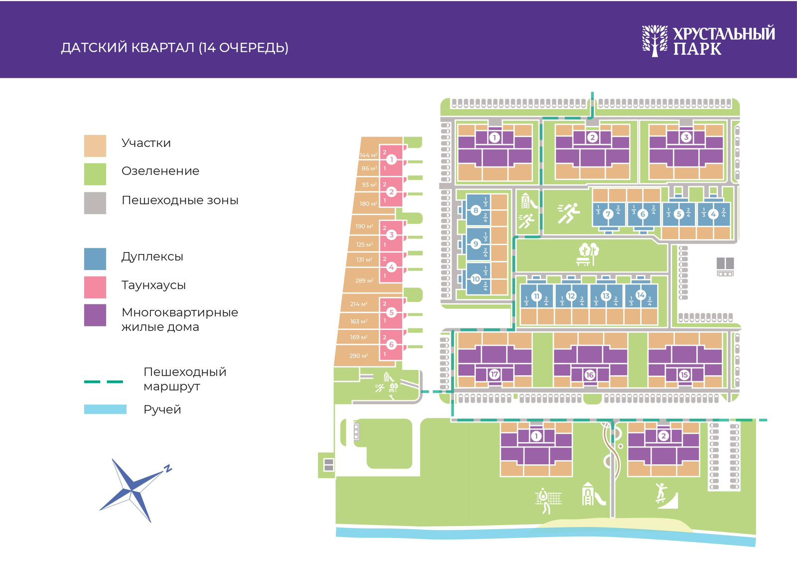 _ Развитая инфраструктура: детский сад, остановки, асфальтированная дорога, магазины, детские площадки, велодорожки, залив, лес;