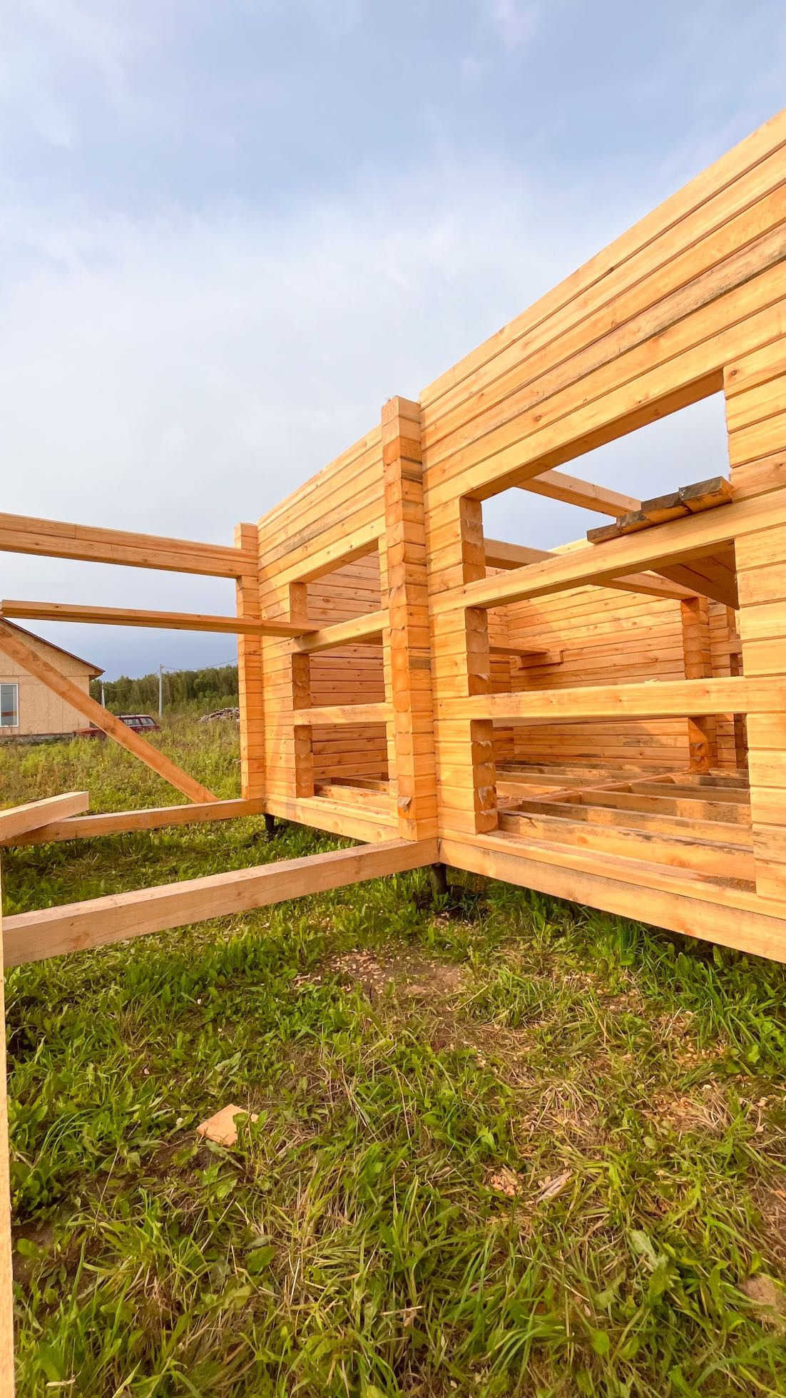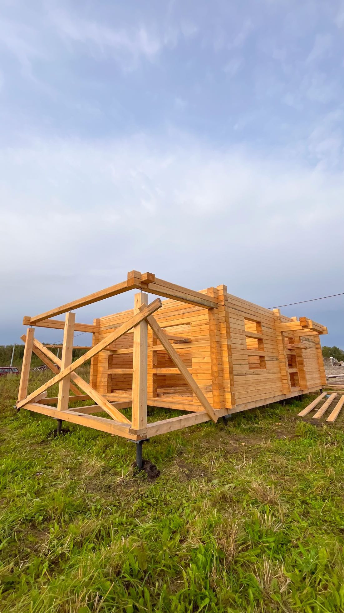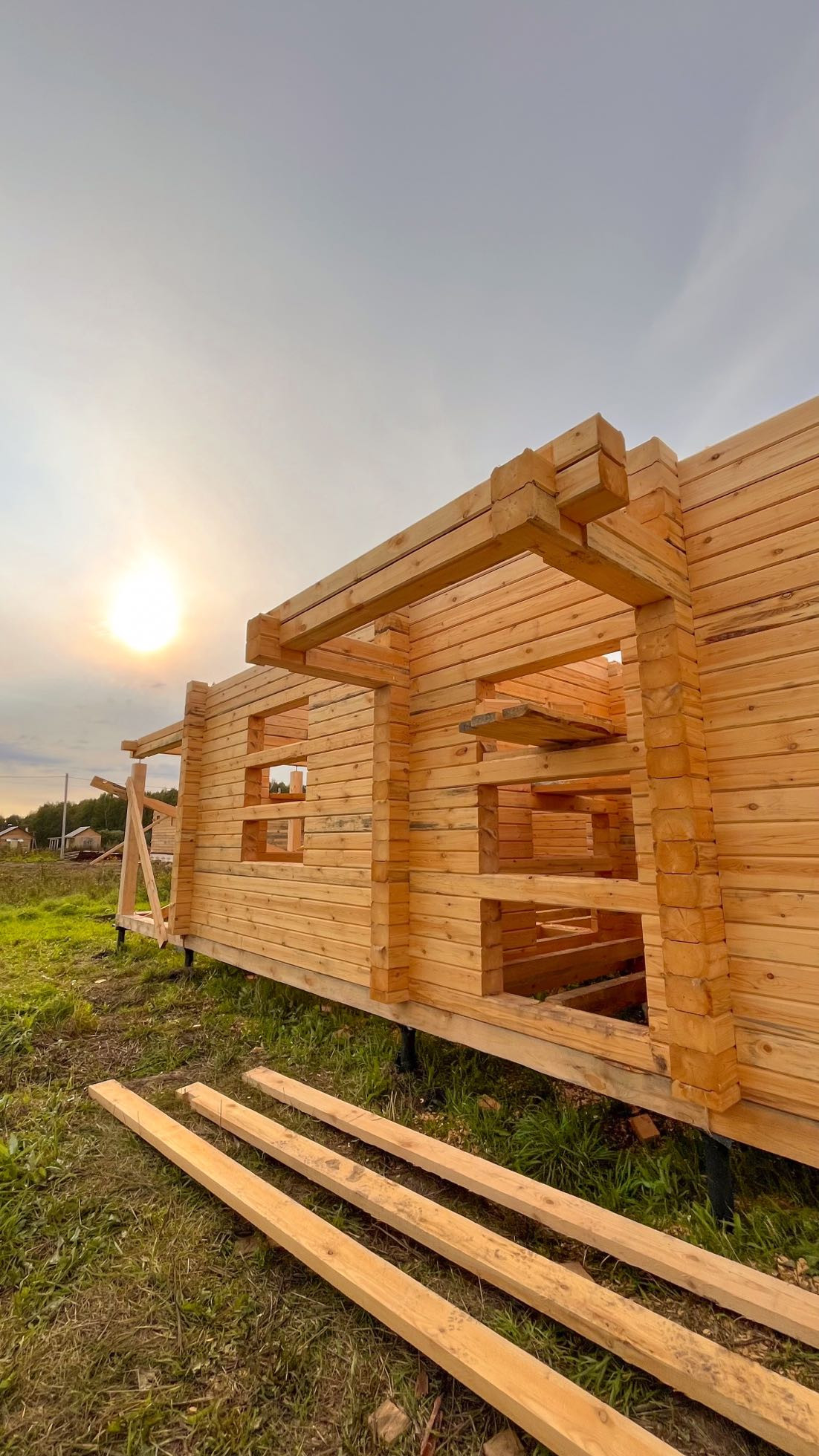 На данный момент возведены стены первого этажа. К концу сентября будут готовы стены и крыша, к середине-концу октября дом будет готов полностью.
