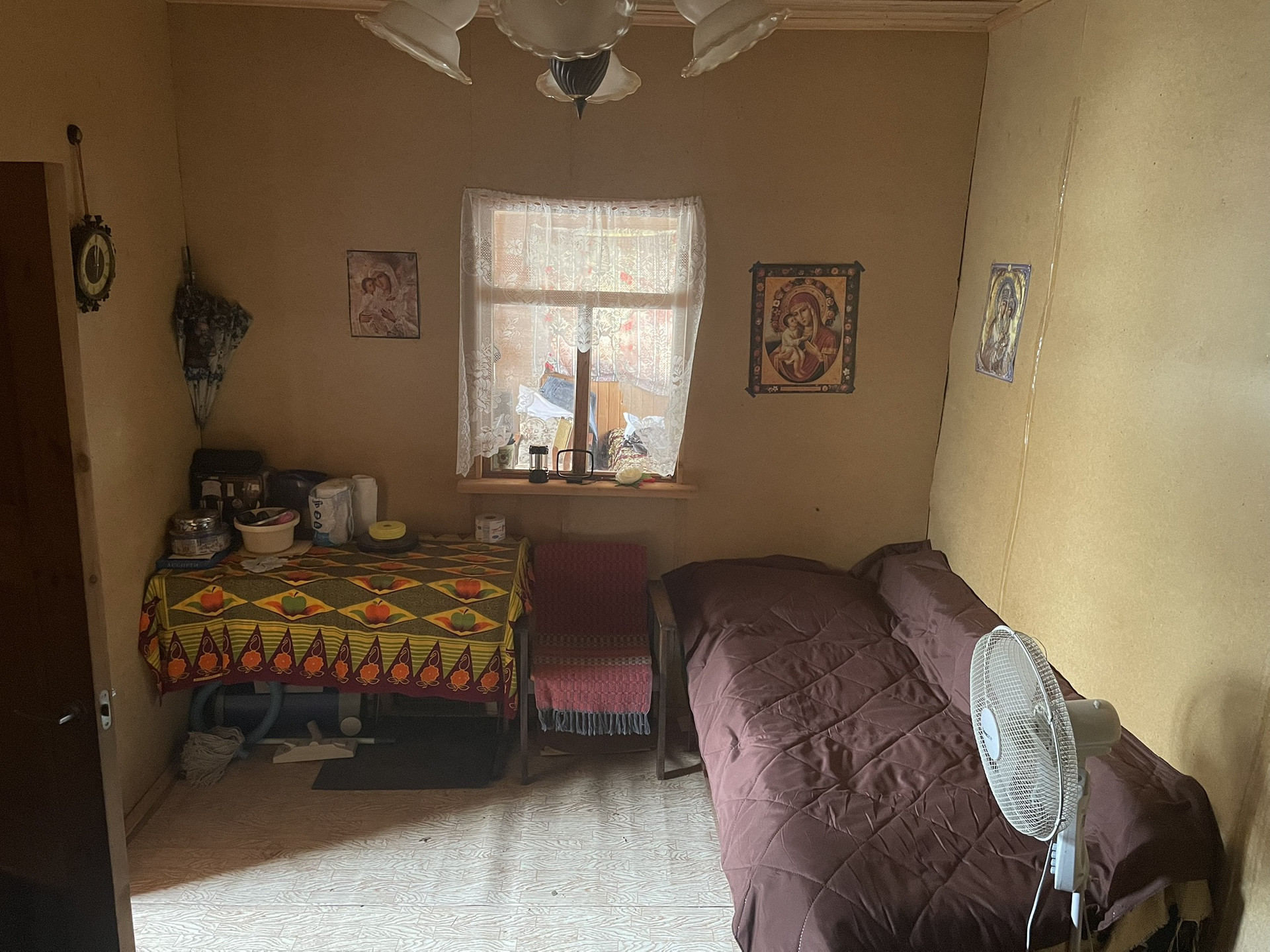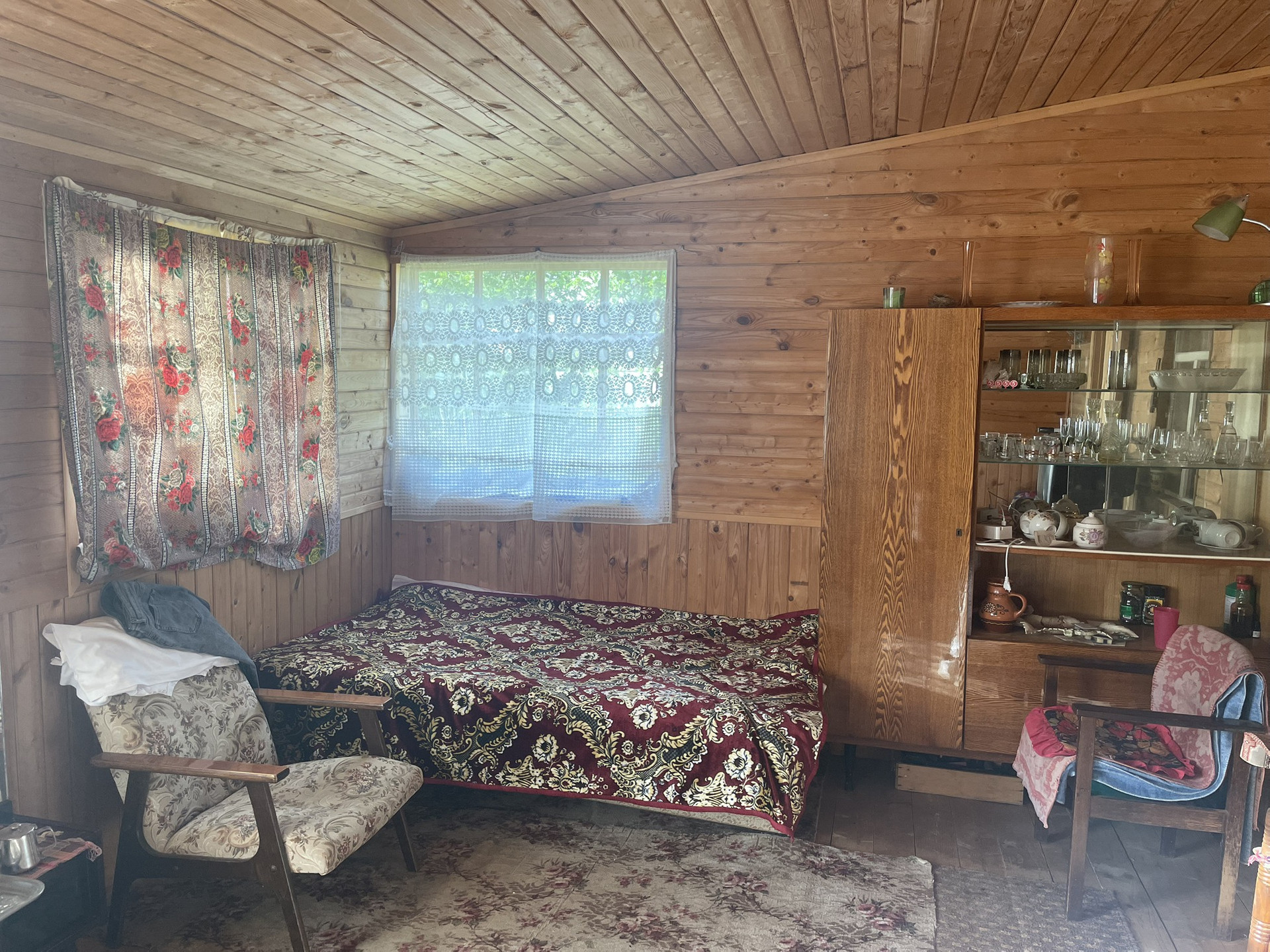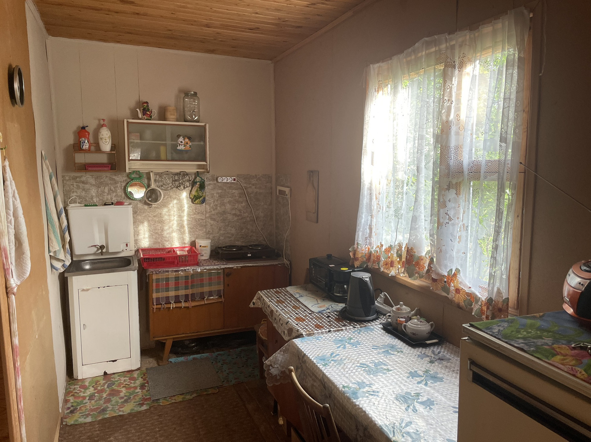 Так же на участке растут плодовые деревья и кустарники. Участок ровный , 10 соток, никаких вложений не требует. В доме стоят батареи, подведен свет, летом жить комфортно. Есть холодильник, кофеварка, мульварка, электрическая плитка и газонокосилка.