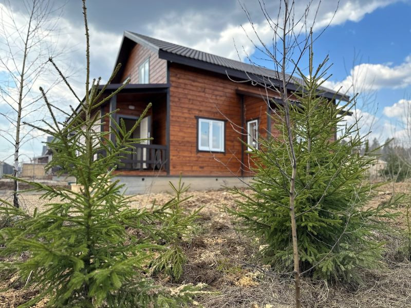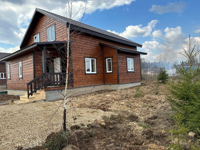 Дом полностью из бруса, 1 этаж: просторная кухня-гостиная с панорамным окном и выходом на террасу, отдельная спальня, коридор, сан. узел с панорамным окном - место под душевую кабину, стиральную машину, умывальник, 2 этаж: 3 отдельных спальни, выход на балкон, сан.узел - место под ванну, умывальник. Установлена вся сантехника.