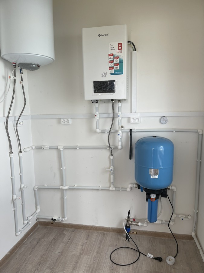 Электричество - 15 кВт, 380; Водоснабжение - своя скважина на участке; Канализация - септик; Установлена сантехника в с/у; Отопление – электро котел; Интернет - оптоволокно.