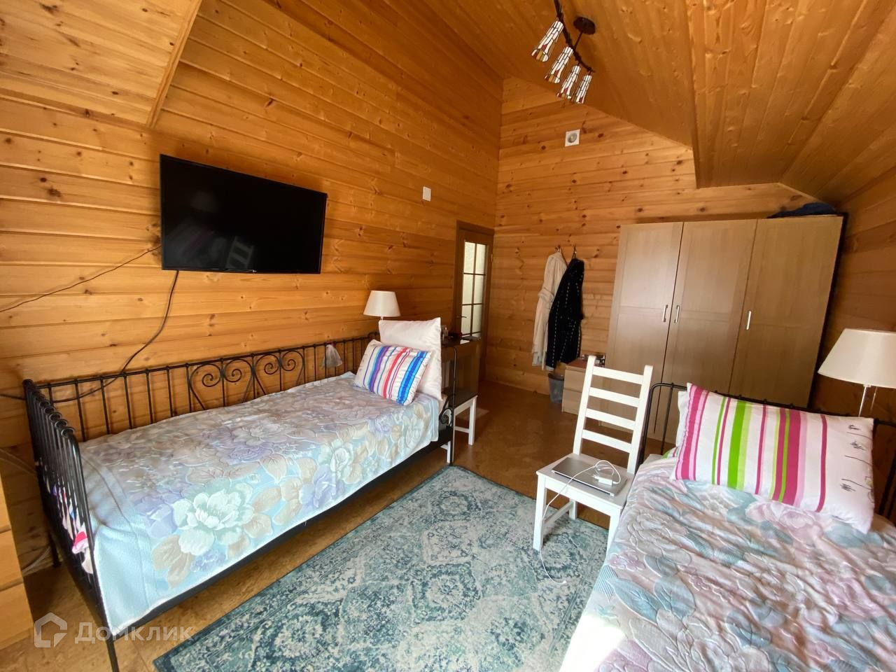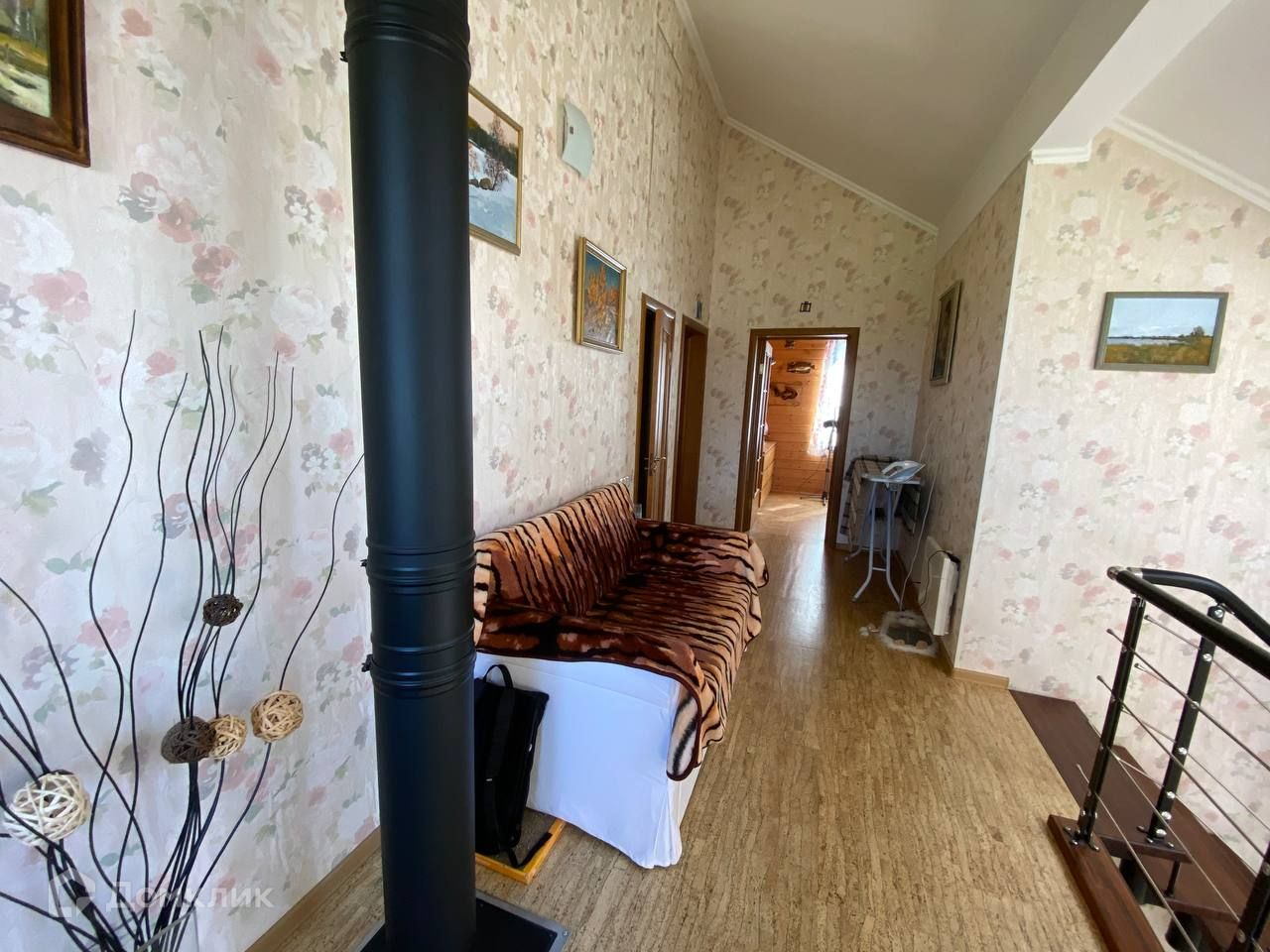На втором этаже три спальные комнаты, санузел с ванной и беде, у лестницы оборудована рабочая зона с небольшим диваном которое раскладывается в дополнительное спальное место.