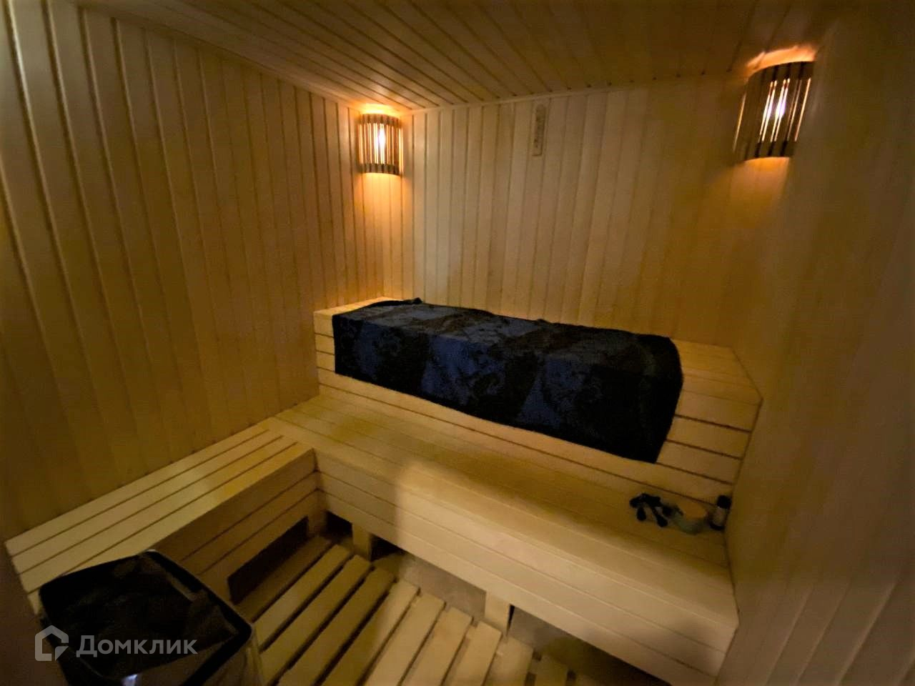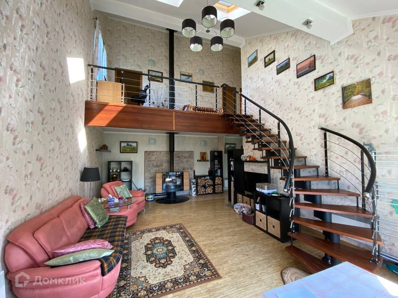 На первом этаже просторная и светлая кухня с отдельным выходом на улицу, гостиная с камином, санузел, сауна с душевой, две комнаты подсобного назначения.