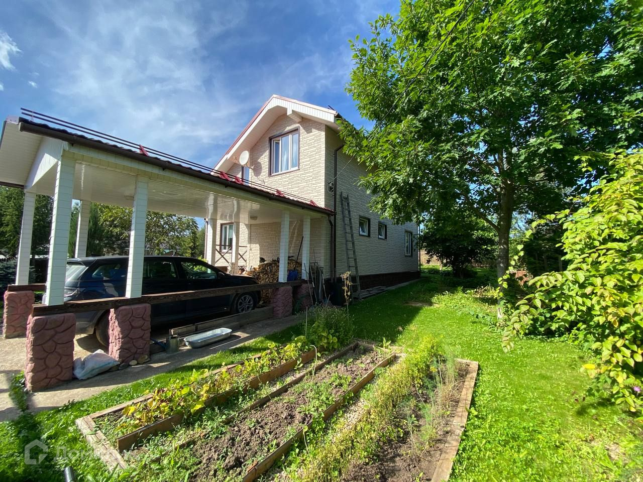 Дом каркасный деревянный, утеплён, крыша металлочерепица, окна с двухкамерным профилем Рехау. Электричество 3 фазы, 15 кВт, двухтарифный счетчик (минимальный сельский тариф). Канализация местная - септик Астра-8. Скважина, подогреваемый в зимнее время подвод воды в дом. Отопление электричество + камин, теплые (электрические) полы. Газовая магистраль в 100 м от дома. Система водоподготовки производства АО Мембранная техника и технологии, водонагреватель 100 л. Так же к дому пристроен навес для одного автомобиля.