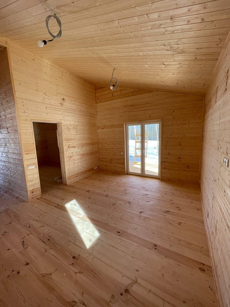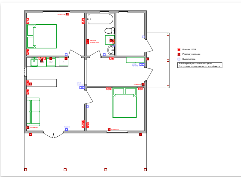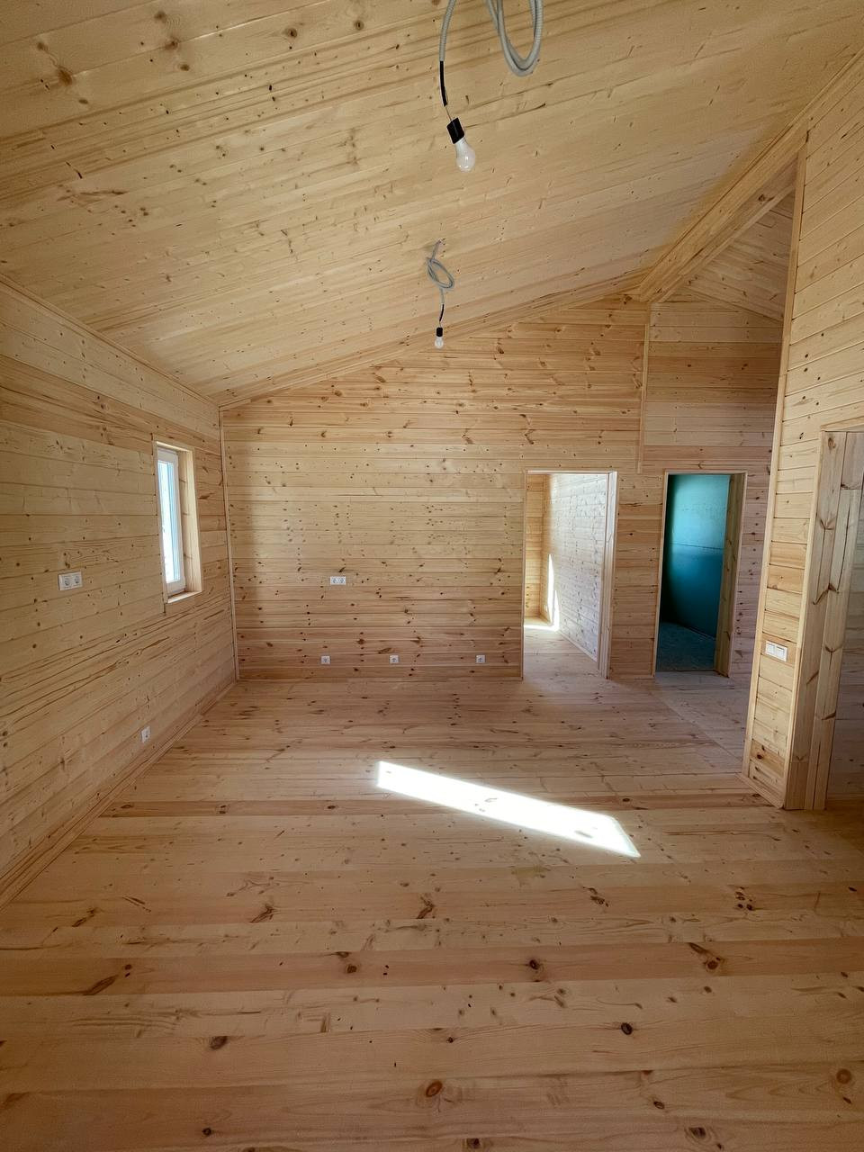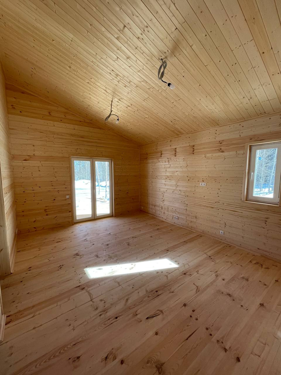 В доме полностью разведено электричество, установлены розетки и выключатели, продуманы все детали.