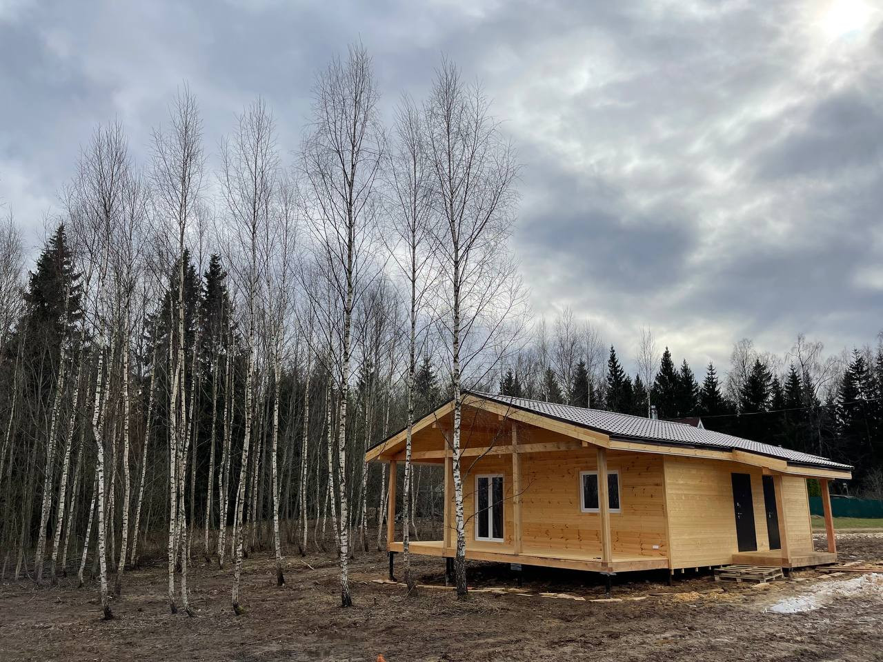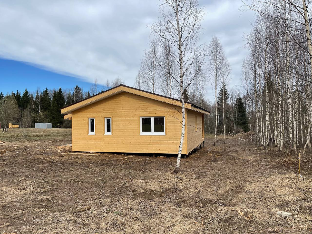 Земельный участок ровный, правильной формы. Во время расчистки участка перед строительством были сохранены березки.