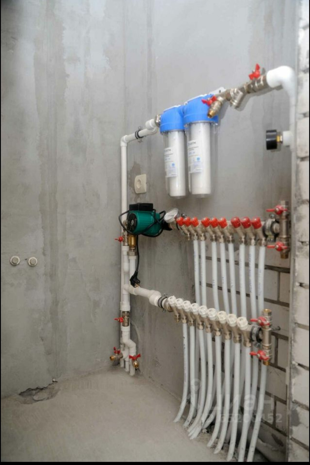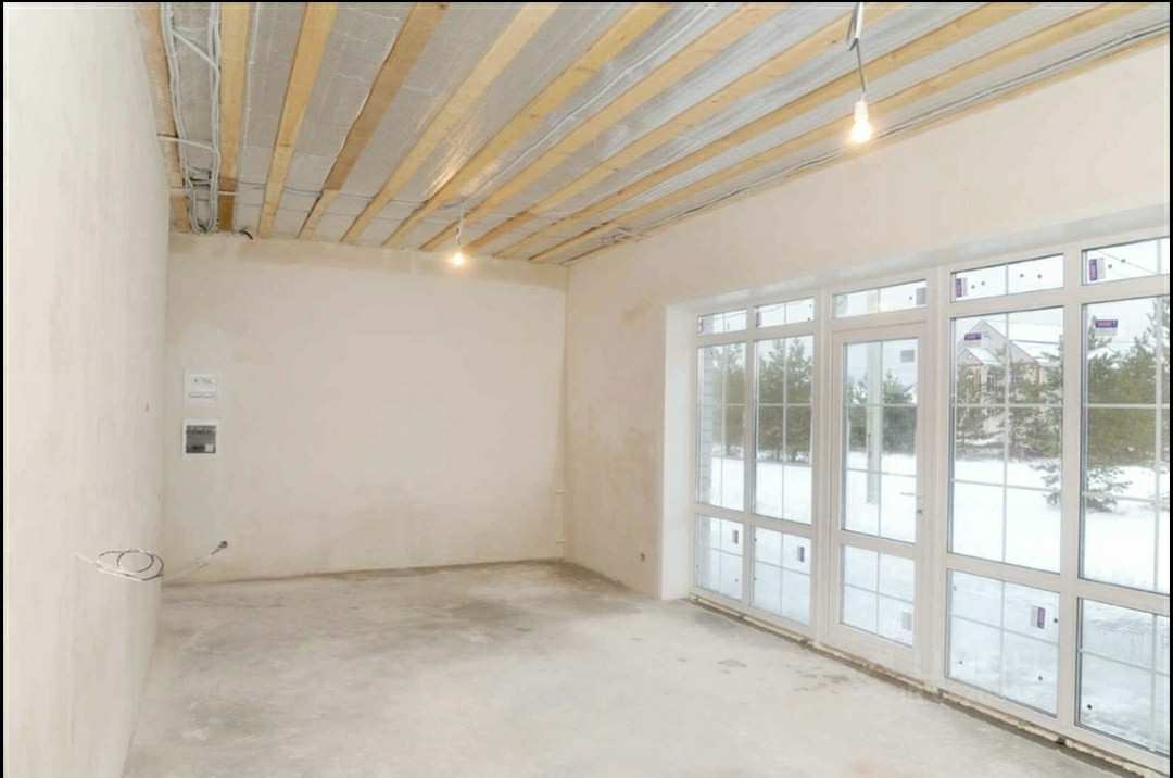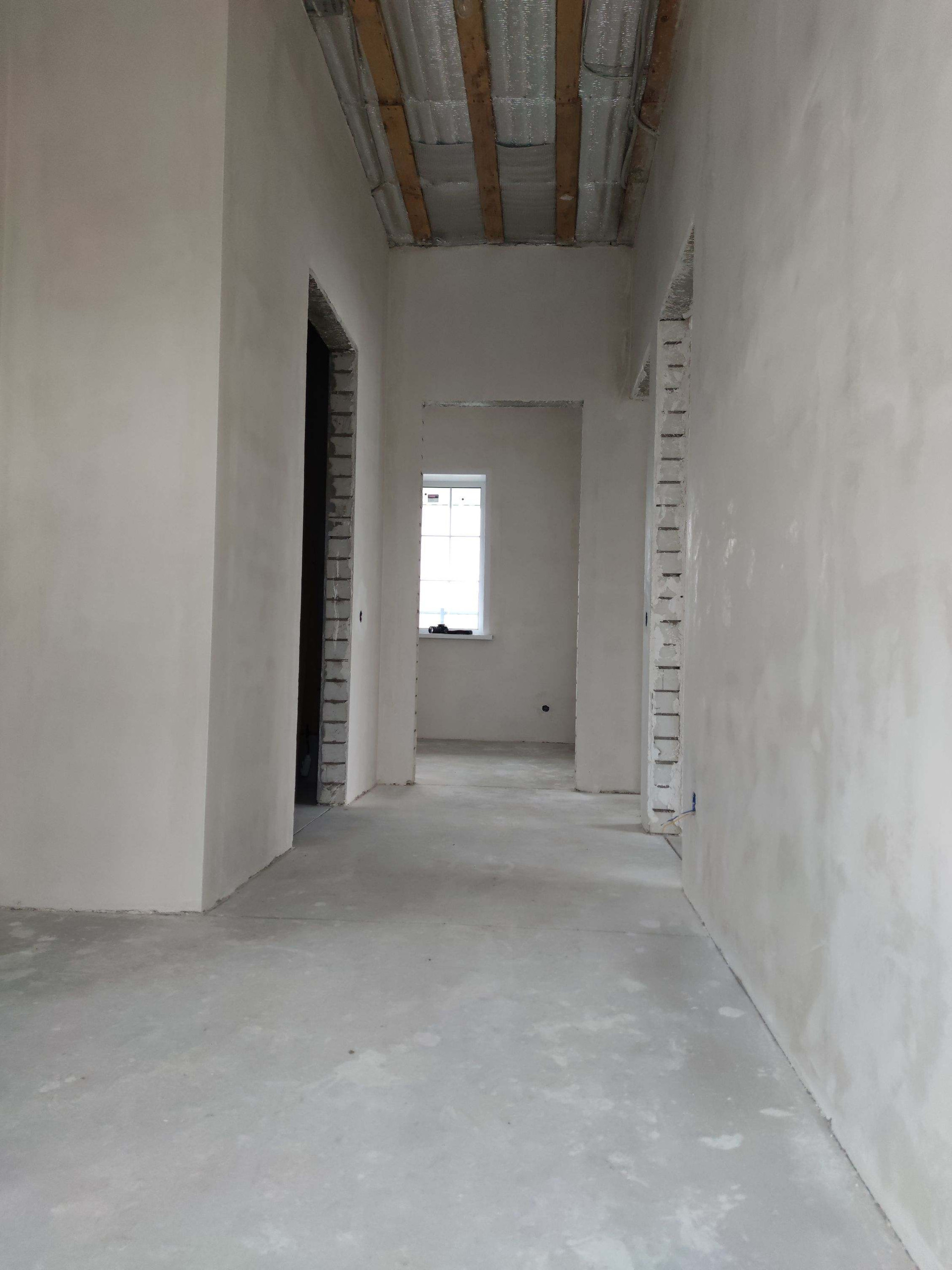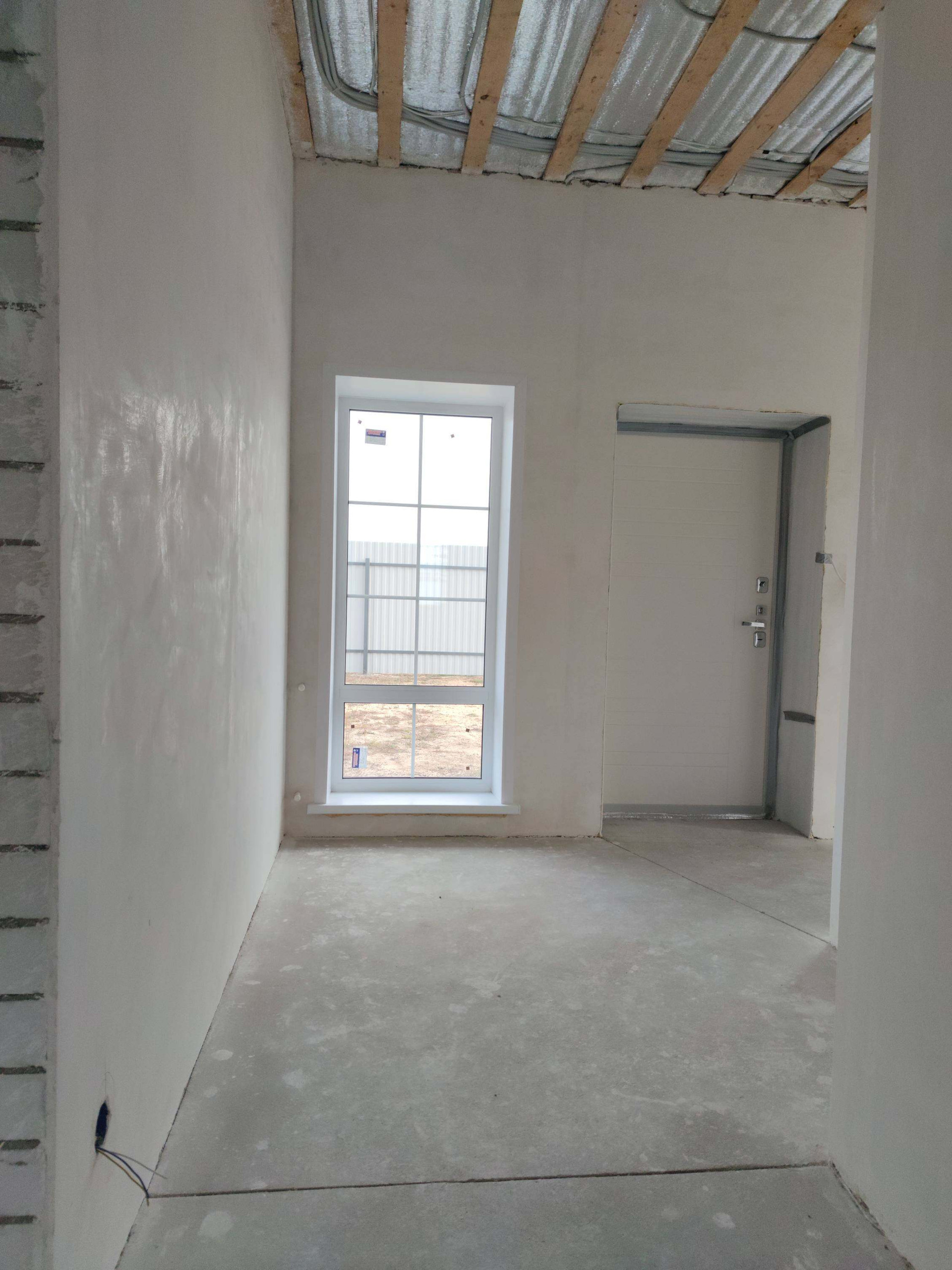 Установлен двухконтурный котел Navien (два года гарантии) с комнатным термостатом. Дом оштукатурен гипсовой штукатуркой Knauf MP 75. Чистовая стяжка пола изготовлена механизированным способом.