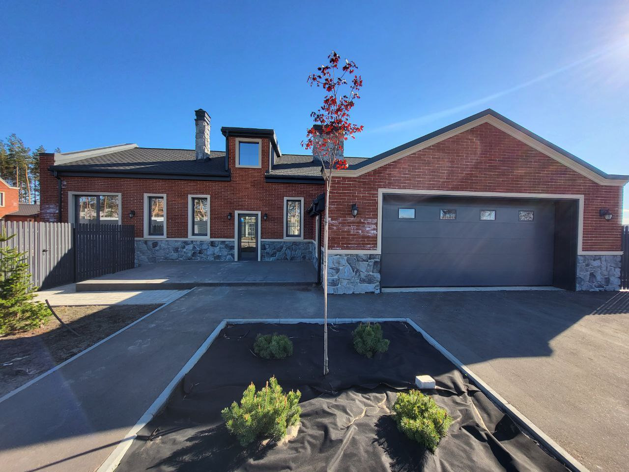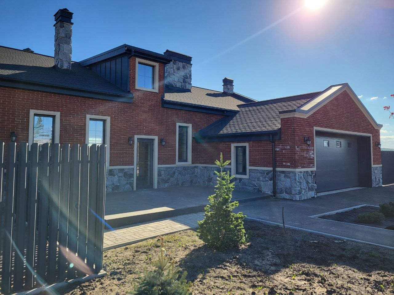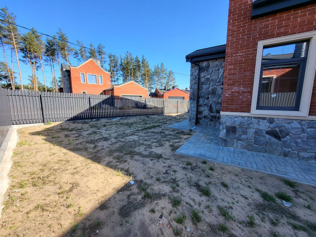 В продаже чудесный с полностью готовой придомовой территорией, участком правильной формы, стилизованным забором по периметру.