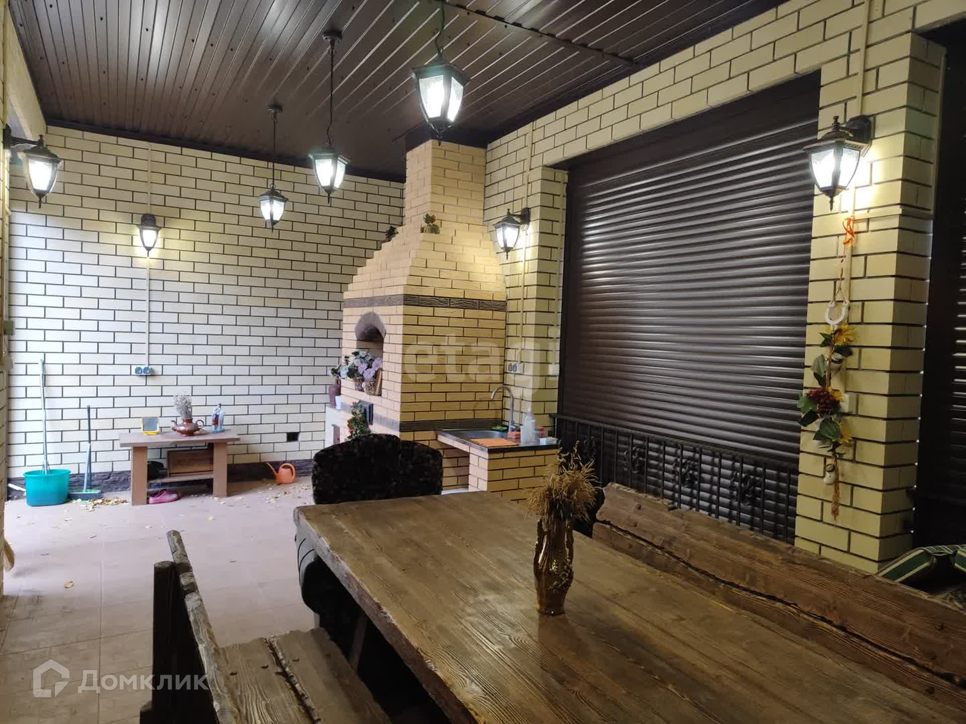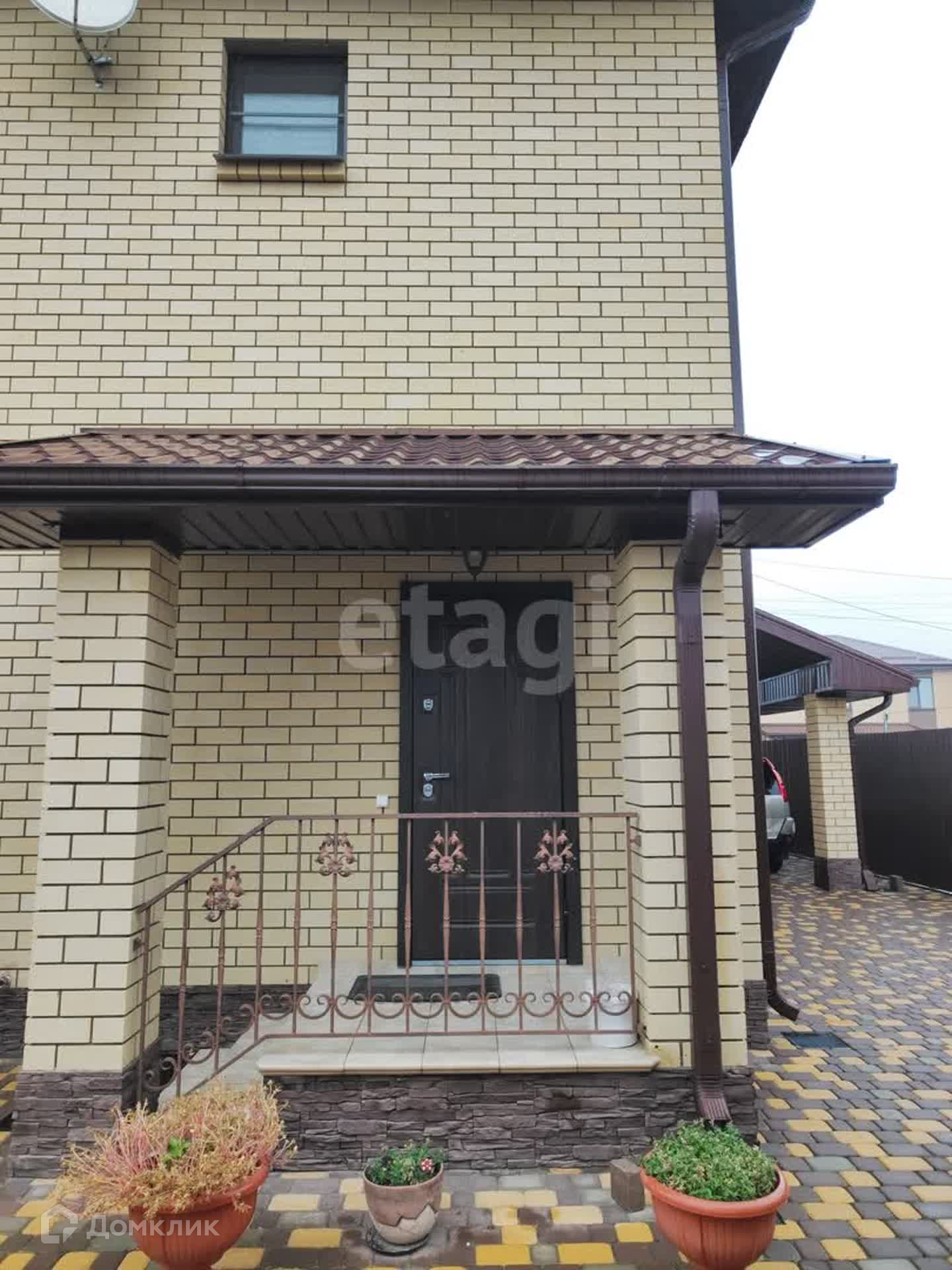 Во дворе уложена брусчатка, входные группы немецкий клинкер. Беседка с большой зоной барбекю (пол керамогранит) , капитальный гараж с отделкой внутри (пол керамогранит, стены окрашены, высота потолка более 3х метров), подвал, автоматические ворота, скважина 45 метров, 2 сливных ямы 20 кубов.