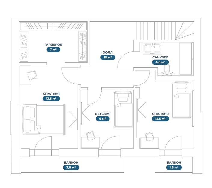 — Спальня 2 – 12,5 м²