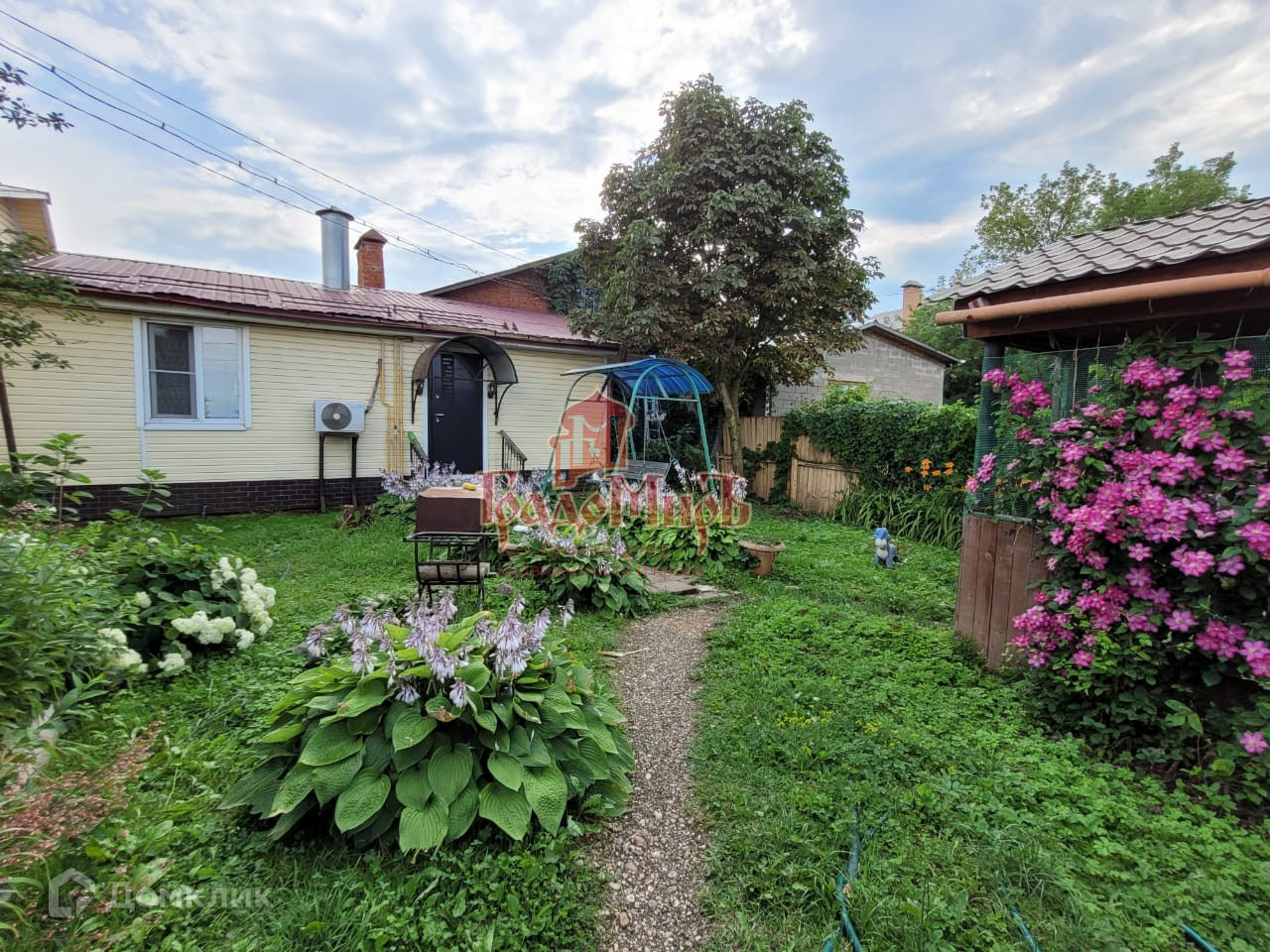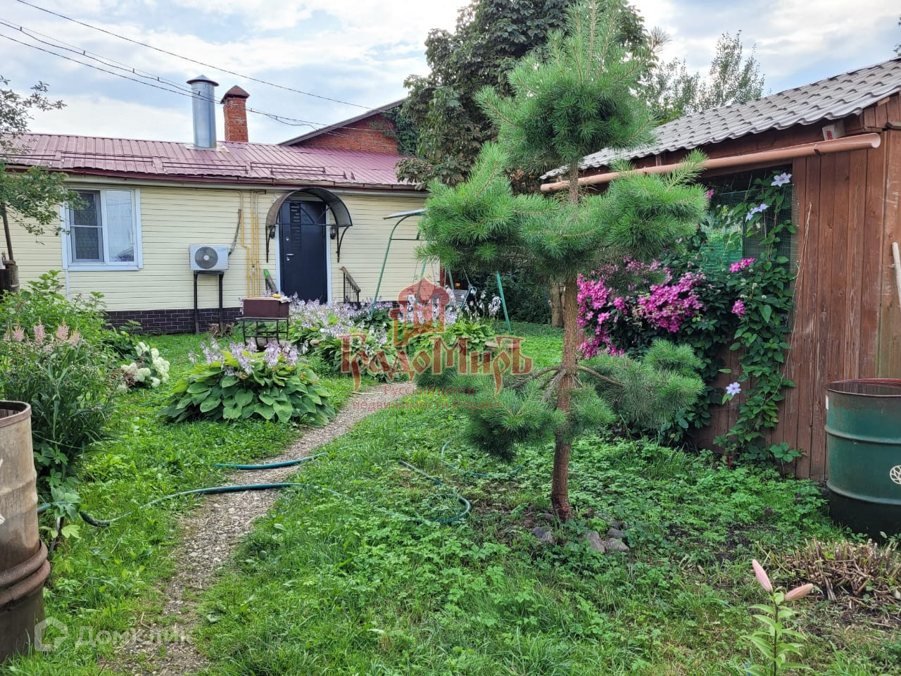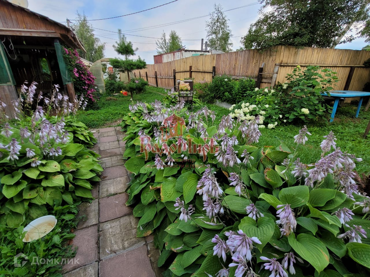 Участок ровный, прямоугольной формы площадью 4 сотки ухожен и благоустроен, есть сарай и гараж, теплица, беседка, качели, зона барбекю.