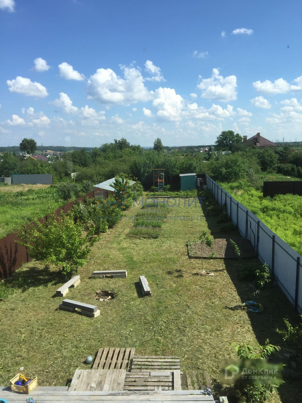 Участок правильной формы, на участке растут взрослые плодовые деревья (Яблони, Груша, Слива,  Абрикос); Малина, Черешня, Крыжовник, Смородина, Ягоды. На участке металлическая бытовка для хранения инструмента, теплица. Участок идеален для любителей заниматься садоводством и земледелием.  Коттедж находится на тупиковой улице, что означает минимальное количество проезжающих машин под окнами.