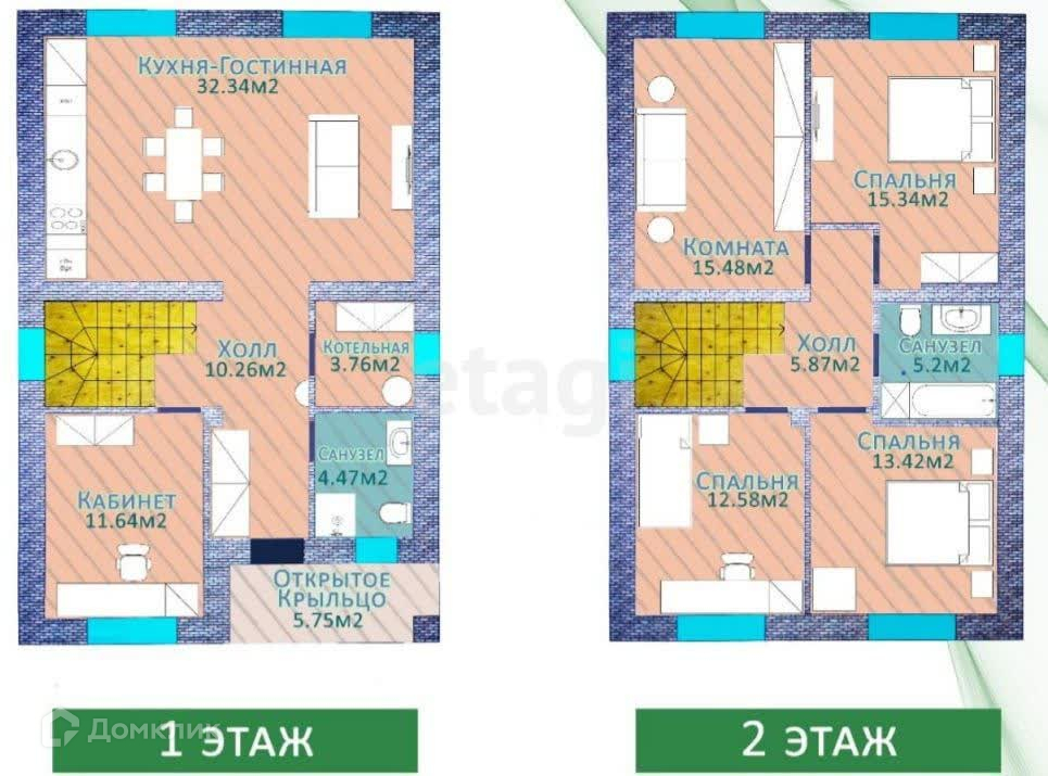 2 этажа, 5 комнат (возможны различные планировки на этапе строительства).
