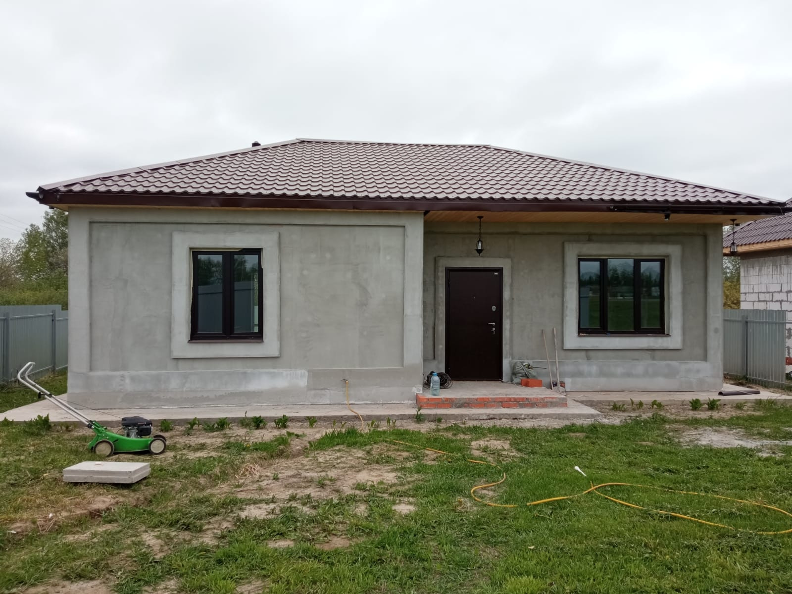 Стены дома из газобетона «250», выполнено утепление фасада с армированной штукатуркой