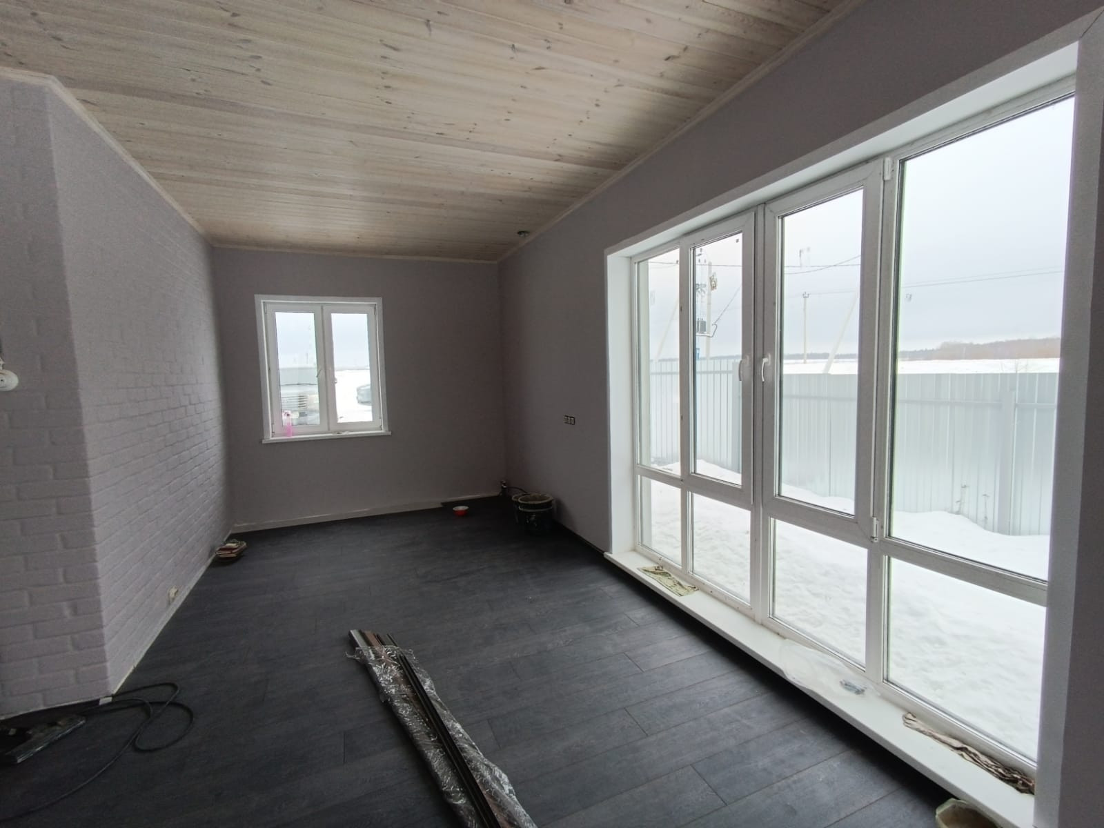 Отопление – теплый пол по всему периметру дома, сейчас отапливается электрическим котлом 3 кВт. Этого вполне достаточно для поддержания положительной температуры в 15-20 градусов, при отрицательной температуре на улице.