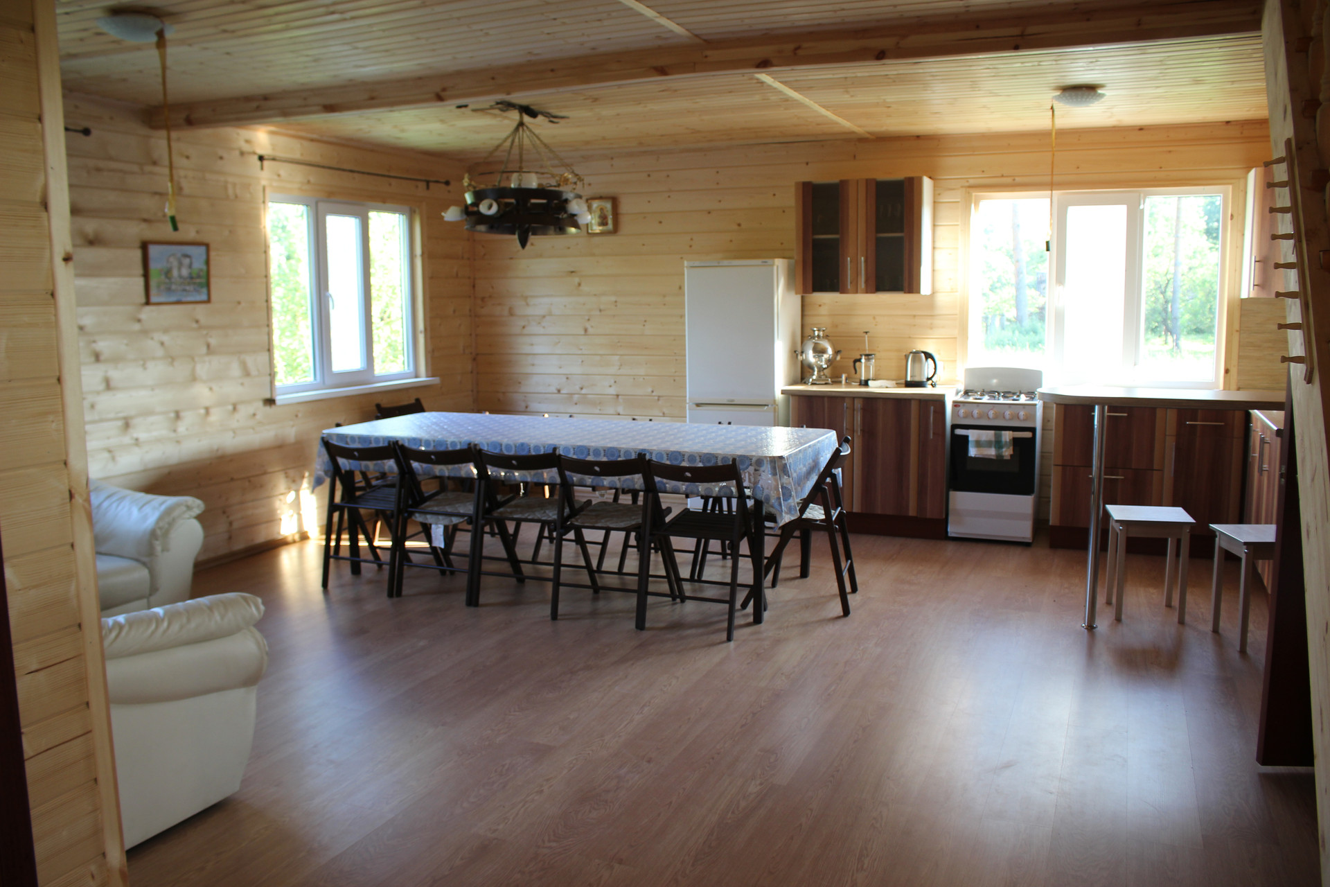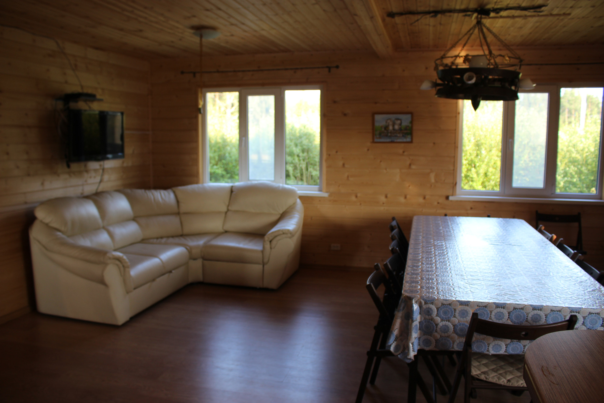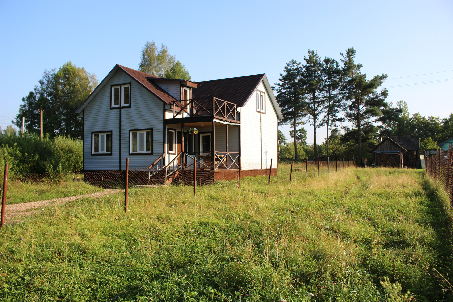 отделка- имитатор бруса, скважина, канализация, сауна, зал 36 кв.м, 5 комнат, два санузла, терраса, балкон, дом граничит с лесом(сосны и лиственницы), находится в уединенном месте, черничник, Электричество 30 кВт( тариф сельский), газ магистральный, удобная лестница, дорогу зимой чистят, дорога построена за 2млн руб, ИЖС, до Кингисеппа 1 км