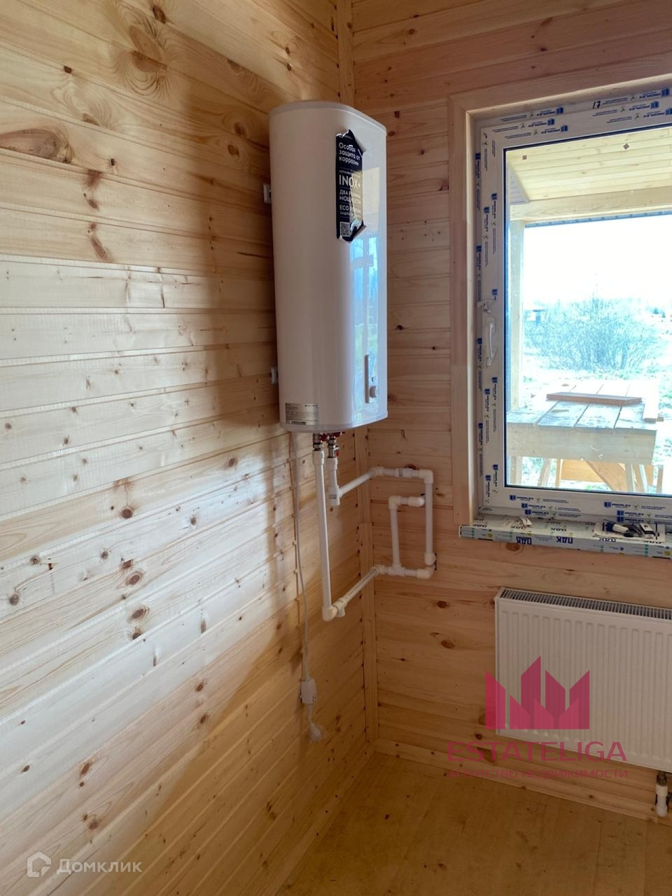 В доме разведено отопление, водоснабжение и электричество. Электрокотел 9кВт.