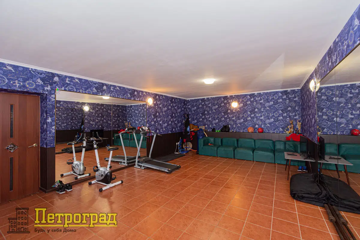 Продуманная планировка для жизни большой семьи - жилые комнаты и пространства для сбора гостей расположены на каждом этаже, жилые комнаты расположены в комфортной удаленности друг от друга. На первом этаже расположена кухня-столовая и гостиная с камином, на втором этаже гостиная с балконом, на цокольном этаже организован спортивный зал с зоной отдыха и бассейном
