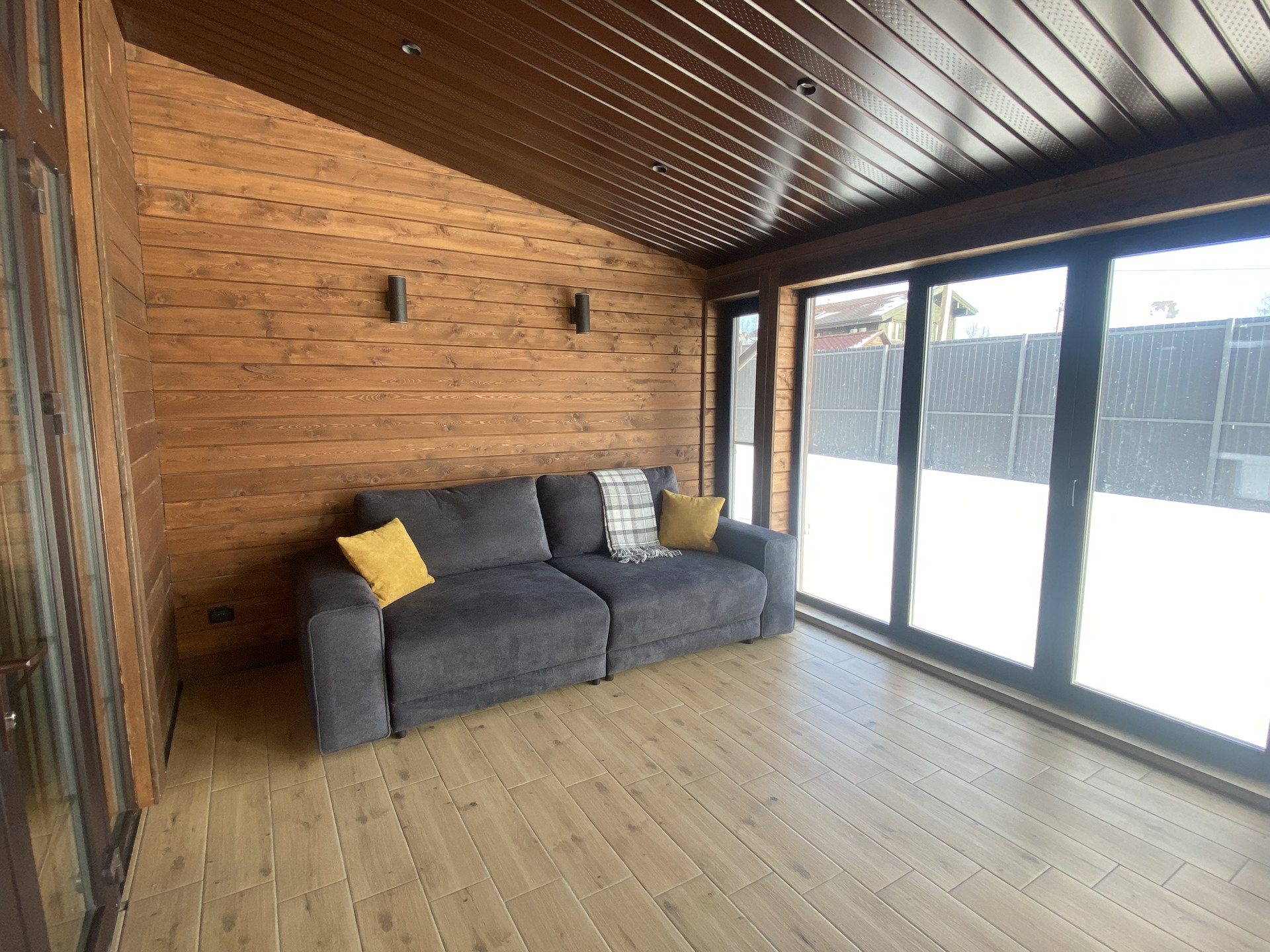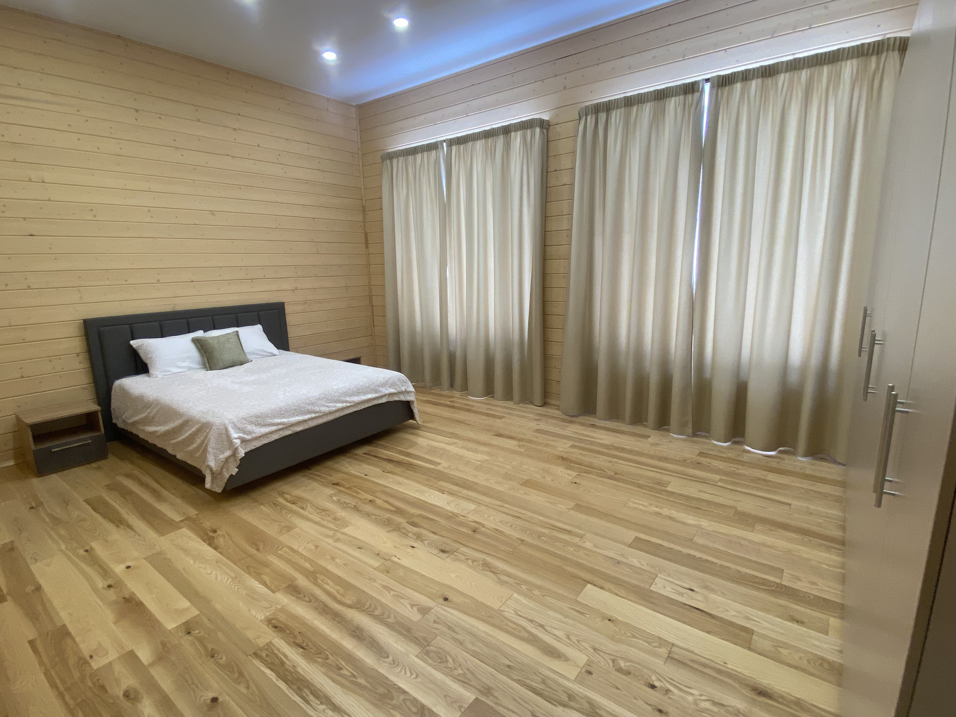 Дом 250 квадратных метров, 1 этаж. 3 спальни, 2 санузла. Индивидуальный проект, построенный по каркасной технологии, продуманный до мелочей, для семьи 4-5 человек. Окна гостиной, кухни, открытая и закрытая террасы смотрят на юг, что позволит в любое время года наслаждаться максимальным количеством солнечного света. Здесь вы сможете отдохнуть всей семьёй от городской суеты и насладиться тишиной. Все помещения дома - большой площади, с высоким потолком, это дарит ощущение комфорта и простора. В доме есть своя СПА зона с сауной. Предусмотрена вместительные гардеробные. На кухне собственная кладовая для продуктов. Специально оборудована кальянная зона на террасе и зона барбекю. Для всех инженерных коммуникаций дома, громоздкой бытовой техники, предусмотрено отдельное просторное техническое помещение со стеллажами и шкафами. Дом продается меблированный и с техникой. Строился для постоянного проживания собственной большой семьи, благодаря чему продуманы все мелочи.