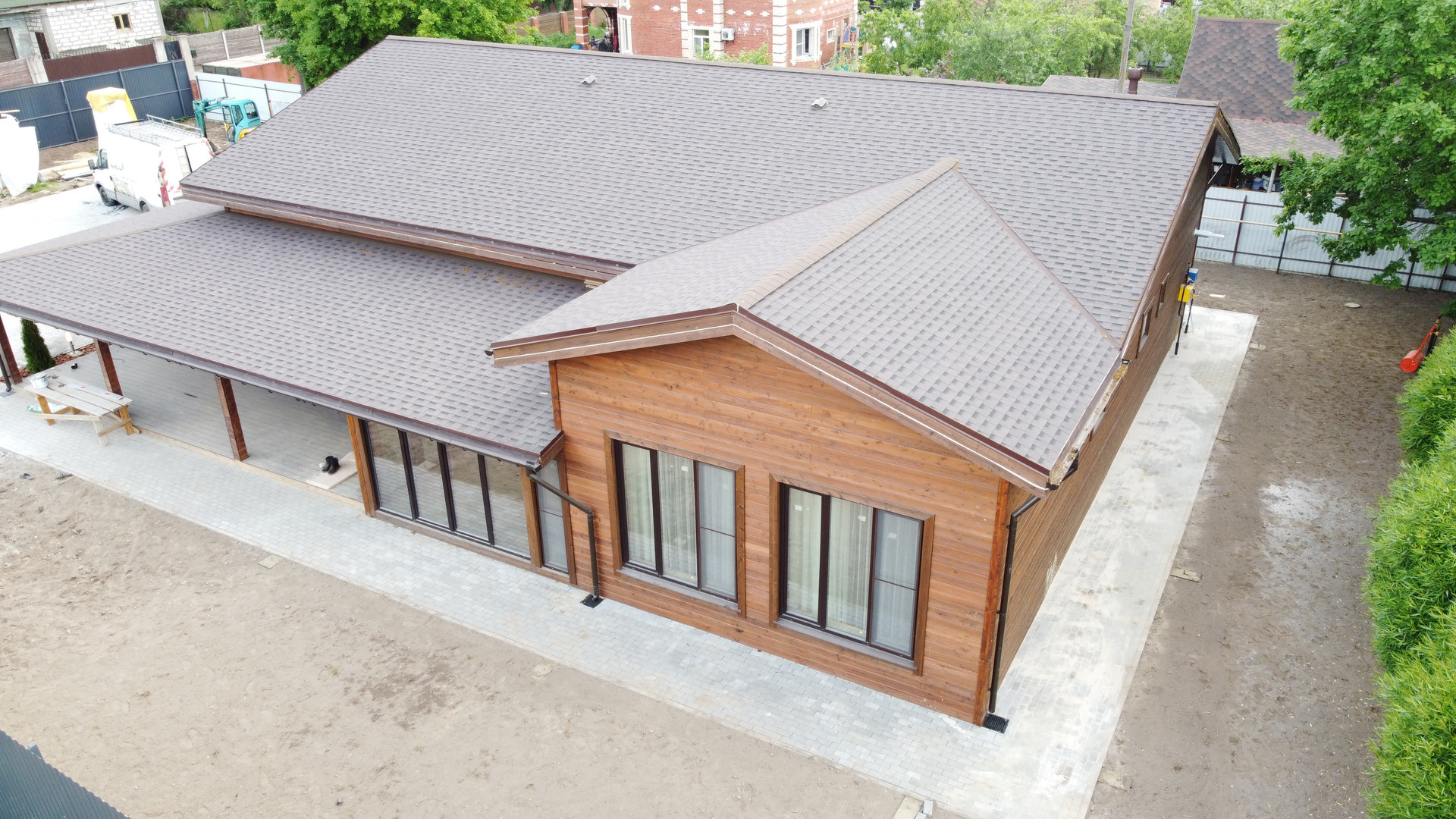 К дому подключены все коммуникации: свет, вода, газ, канализация. Круглосуточная охрана обеспечит Вашу безопасность. Паркинг с собственным навесом на 2 машины, выполнен в едином стиле с домом.