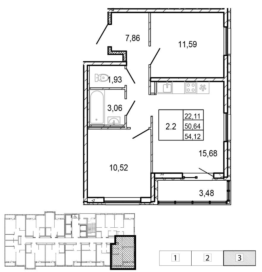 Жилая площадь 22.11 м2
