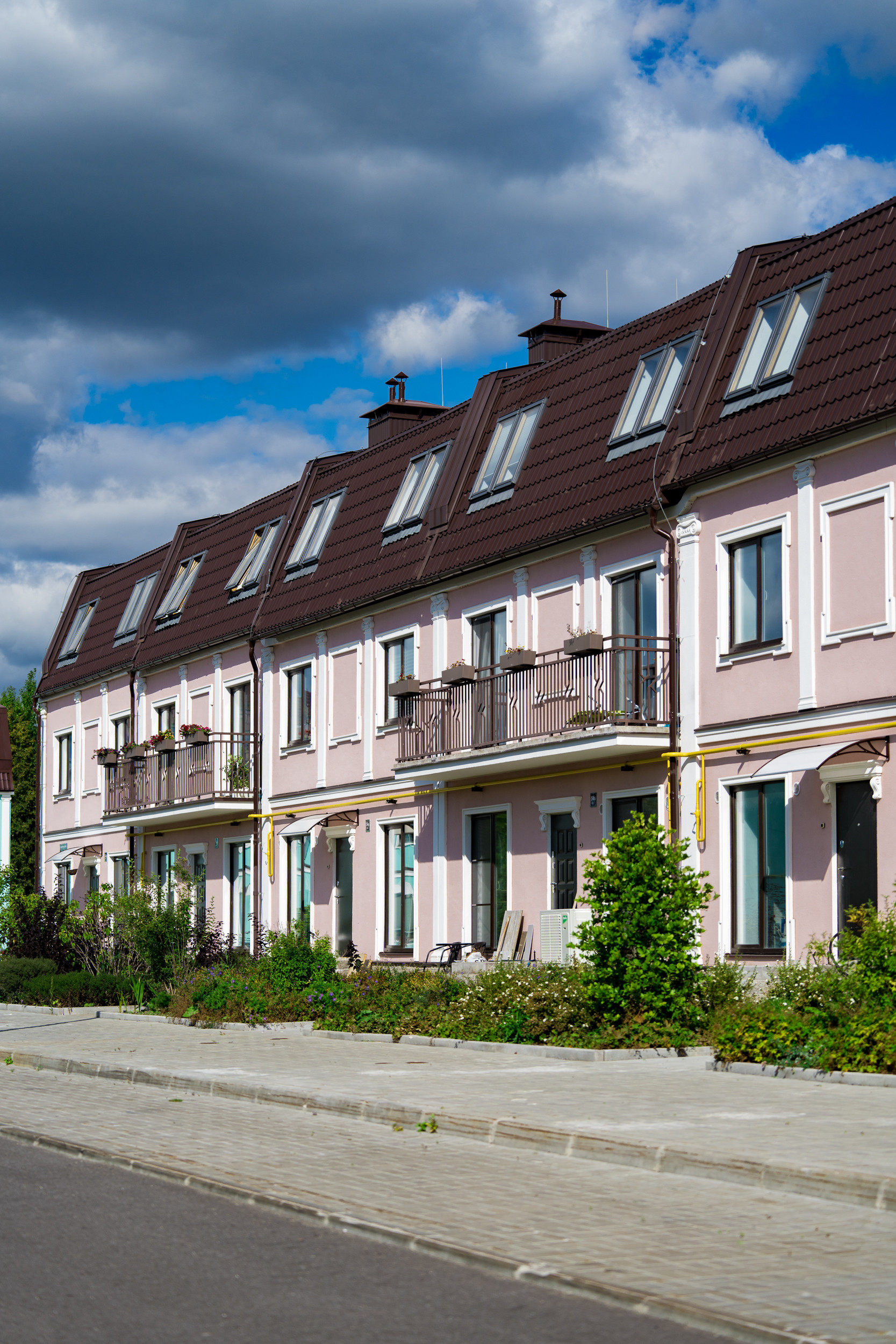 Все городские коммуникации (водопровод, канализация, газ, электричество). Для каждой квартиры предусмотрены парковочные места. На территории уже строится детский сад, запроектирована школа и торговый центр.